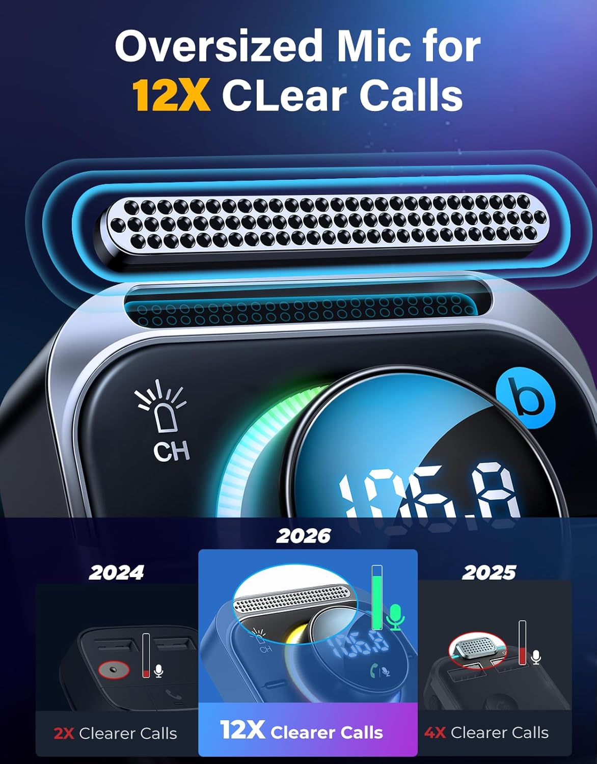 I had a Bluetooth 4.2 transmitter that was doing just fine, but just bendable neck had broke, allowing the face/head of the transmitter to spin and not be able to hold in place. It was a “BF20” model. Nothing wrong with it, I broke it on accident I guess… well, maybe it was a little weak.Anyways, this product is BT 5.3. My phone is only BT 5.0, so that’s all I’m able to use at the moment. I really didn’t think it could make such a huge difference in sound quality. That bass button is no joke. It’s more than a bass booster. It’s like a whole tuned equalizer button that also boosts the bass.I’m not even exaggerating, the sound quality? Amazing. I use Amazon Music and play UltraHD music. Dolby limits that to 24-bit/48khz, most songs are 24-bit/44.1khz. Anyways, every single song sounds better, now. PLUS there’s absolutely zero static noise like before.I haven’t tested phone calls on it. From what I’ve seen so far in quality, I’m sure the 3 mic system works great.I can say RANGE has drastically improved. With the old BT 4.2 device, I was lucky to walk 10 feet away from the car with my phone in my pocket and the music keep playing.Now, with this device (BT5.3) and my phone (BT5.0, so I’m only connecting at BT5.0 and getting 5.0 features), I haven’t had the music cut out haha. It has amazing range, which isn’t ALL that important, but it’s nice to walk more than 10 feet away from my car without the music cutting out.SO, yeah, great, GREAT sound quality. I’m serious. I just can’t get over how different the quality is. I figured it’d be 100% the same but it’s not even close. I “BELIEVE” I’m using the LDAC codec, but it’s hard to tell. I won’t go into the details too far, but that’s what was appearing to show being used in the Developer Options. It’s just so smooth and crisp and well defined. I prefer BT to the Aux Cord because I have to get in and out of my car dozens of times for work.I Used to lose my BT connection and have to go turn off/on my BT on my phone then manually connect to my old BF20 with BT4.2. Now I don’t even lose connection OR it’s reconnecting so fast that I’m not even realizing it’s happening.I don’t “Need” it, but I wish My Galaxy S10+ had BT 5.3 haha, but I’m having zero probs with it having BT 5.0. It’s all backwards compatible, anyway. My PC does have it, so I’m gonna use Amazon Music on it and transfer to my car and see how it sounds for fun.Very excited over this BT to FM transmitter… honestly. SOOO glad I went with this one. Between this and my “Auxiliary Port Extender” (1x cig lighter to 3x lol), I’ve got enough USB-A and C ports to charge 6 or 8 phones at once. 3x on the JOYROOM FM/BT adapter and the rest on the 1x to 3x auxiliary port hub. Charging is fast on it, too. You need a good cable as THAT is where the main weakness in charging lies. I use a USB-A to C in the car that has 3.2 Gen 1 data (5gbps) with 65 watt support. The data isn’t important, but you do want a good cable that will let the power flow. Otherwise, you may think the charger (whatever you’re using) is weak when it’s actually the skinny cable you’re using.I went overkill for wattage on purpose, but I did need the high speed data. They are Amazon Basics cables. Best deal on cables period. They have to pass inspections, so when they say USB 3.2 Gen 1 or Gen 2, you can believe it. I didn’t want a 65 watt cable that only did USB 2.0. Amazon Basics seemed to be the ONLY cable manufacturer that honestly does what they advertise.Anyways, that’s a bit off topic, but important to know when judging the charging speed of a charger. The cable is the weak link. I have an S10+, so, I have 15W wired max charge speeds and have zero issues charging.I don’t care how many more floaty colors they throw on another BT/FM transmitter, I’d STILL go with this one. Looks cool as it is but most importantly, the sound quality exceeded my expectations by 200%+. I had NO IDEA Bluetooth could sound so good.Update 12/21/23: Still working without any single issues. This is the BT to FM device I recommend to everyone. Looks great, all of the buttons still work perfectly, there’s no wear and tear or any broken pieces. It makes my factory stereo (in a 2000 Buick Park Avenue) sound like it has upgraded speakers. I know I have made this review too long but I just can’t emphasize how much is exceeded my expectations.Seriously, if you’ve made it this far into my review, go ahead and at the very least, put this into your small group of transmitters you’re comparing/deciding on. I’d buy another one in a heartbeat if for some reason I had to. Crystal clear audio, enhanced audio quality, very long rage and just all in all a superb BT to FM transmitter.TL;DR…. Look no further, you’ll have no regrets with this device. I hate to keep going on and on, but the “bass boost” (or custom equalizer) button plus high quality music from Amazon Music Unlimited (24 bit/48khz+) and a decent phone (don’t forget, you have an equalizer in your phone (plus Dolby Atmos in many cases) will just absolutely surprise you at how amazing this BT2FM transmitter makes the audio sound. If it blows my mind in an old 2000 Park Avenue, I know it must sound 10/10 in a vehicle with an even more premium sound system.Seriously, look no further, I’ve tried a couple, heard other devices in friends’ vehicles and NOTHING comes close to WHATEVER they did to this one as far as audio tuning. 10/10 range, sound quality AND there’s no annoying background static you hear from all the other BT to FM transmitters I’ve experienced.Okay, okay, I’m done gloating over this device. I just honestly look forward to using it every single day because I drive for work. I even use my PC to play music to an old (but nice) stereo I have and it has NEVER sounded better.