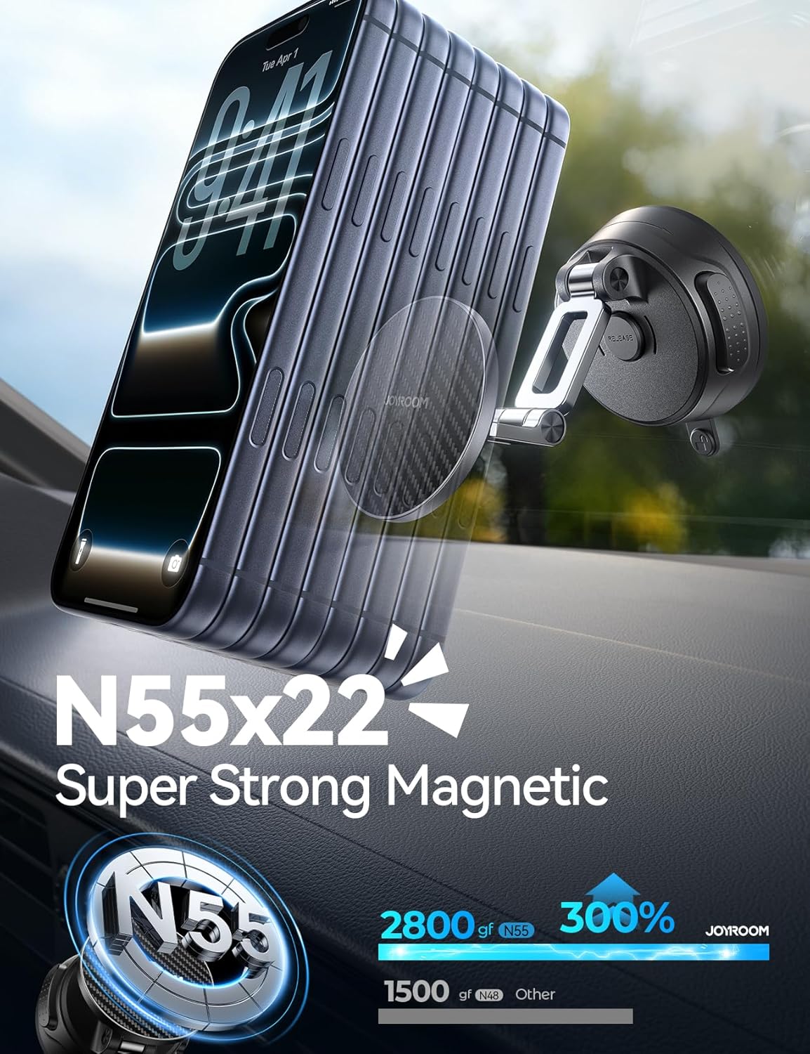 JOYROOM Car Mount for iPhone, [Tri-Fold] MagSafe iPhone Car Mount, [Suction Pro+Gel Base] 360° Rotation iPhone Car Holder, Strong Magnet for iPhone 17 Pro Max and Other Series[Not for Charging]