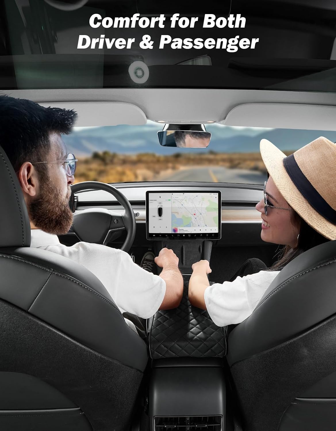 【COMFY ON THE SKIN】Made of quality soft leather, extra enhance the armrest comfy, relieves the stress of your elbow while driving, and keeps your arm from burning in the hot summer or keeping a sweaty arm from slipping around