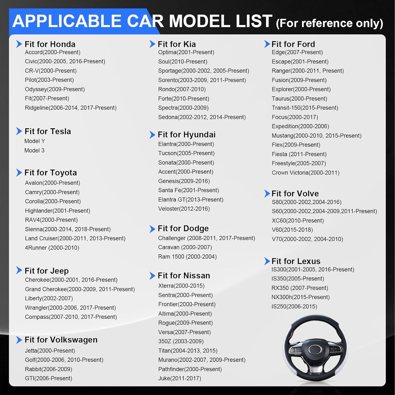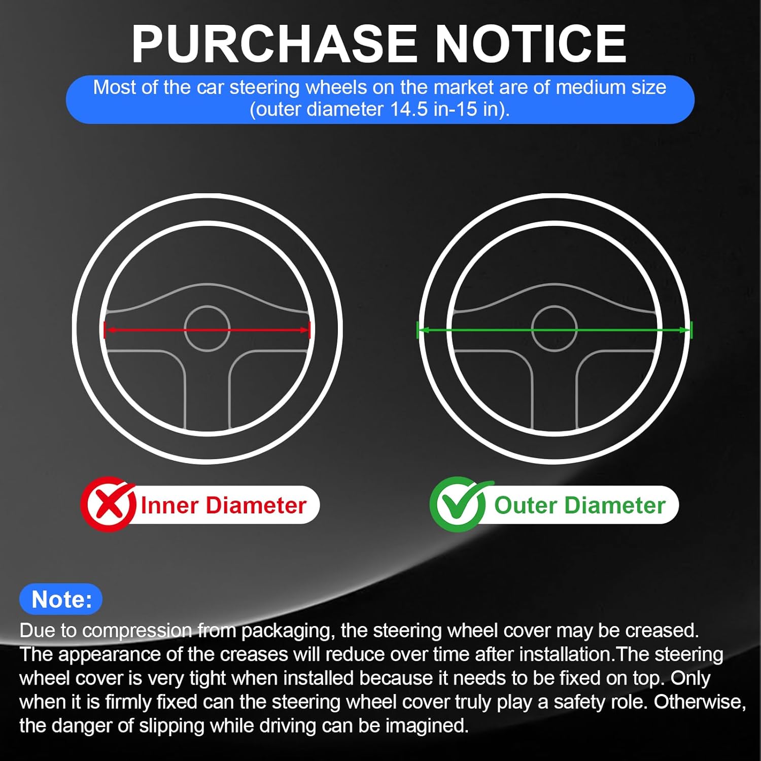 【Wide Application】: Featuring a universal size, our leather car steering wheel cover fits car steering wheels with a diameter of 14.5 to 15 inches. It is compatible with most vehicles, such as sedans, SUVs, vans, and motorhomes. To ensure the product fits your steering wheel perfectly, please verify the dimensions and refer to the product specifications before placing your order.