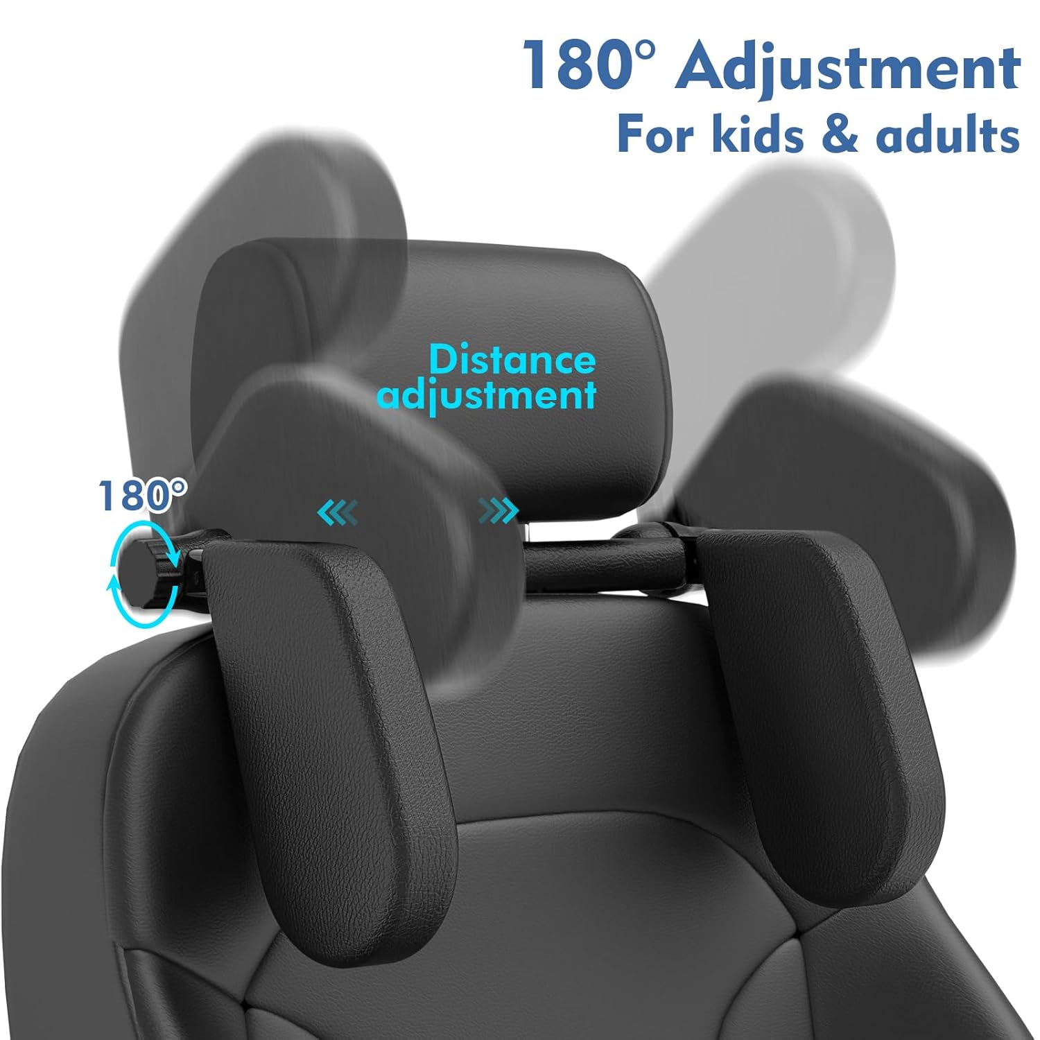 This newest Innovated Version of car headrest pillow 2rd, will be more stable and stronger than other car pillows. Not only support 360°Rotation for any up & down angle, but also support left & right adjustable for your head width, It fits people of all ages from 5, Adjust everyone’s comfort angle freely.