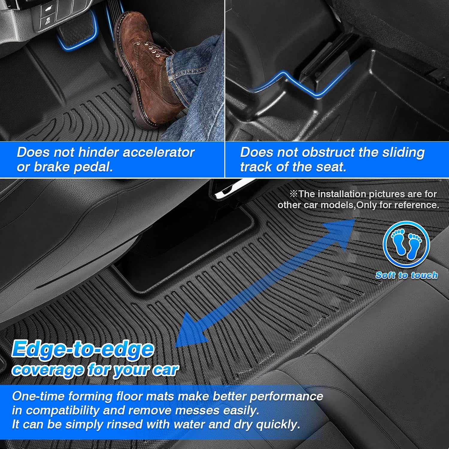 Cartist floor mats are made of TPE materials with advanced 3D scanning techniques to ensure precise fit, featuring odorless, wear-resistant, waterproof, flexible and durable. Floor liners with raised edges will give more protection to your car from water, mud, snow, debris, ect. Allow flexible movement of accelerator and brake pedal. Improve your driving safety and allow your car to be clean and new through any weather!