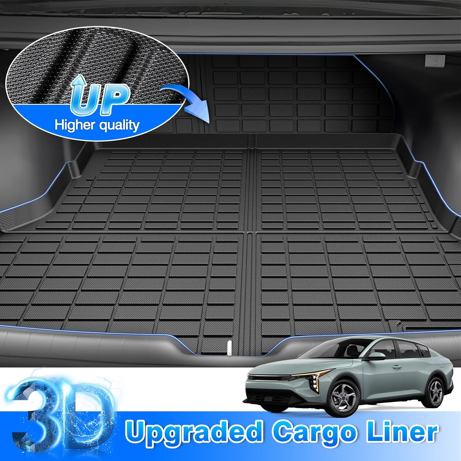 Accessories for K4 — This full set of floor mats and cargo liner is custom-made for the Kia K4 5 Seats 2025 2026. Adopts 3D screening technology to capture every corner and crevice to offer perfect fit and coverage, no need trimming.