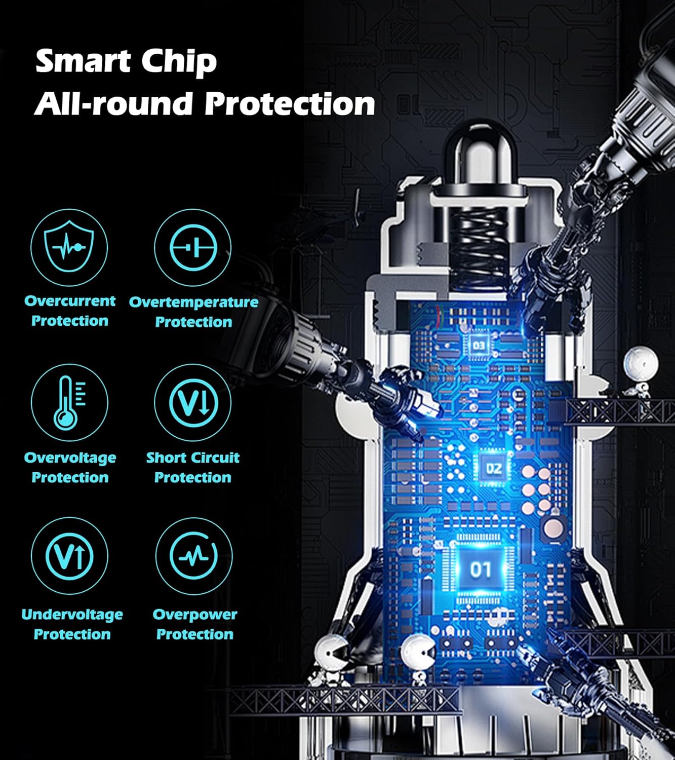 Car Bluetooth safety features protection against overcharging, voltage spikes, overheating, and short circuits, ensuring efficient and secure charging for your devices.