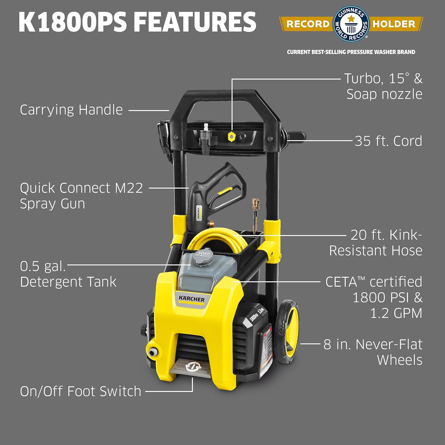 THE KÄRCHER PROMISE – CLEANER. QUICKER: The K1800PS power washer is perfect for cleaning pavement, patios, decks, cars, homes, fencing, and much more