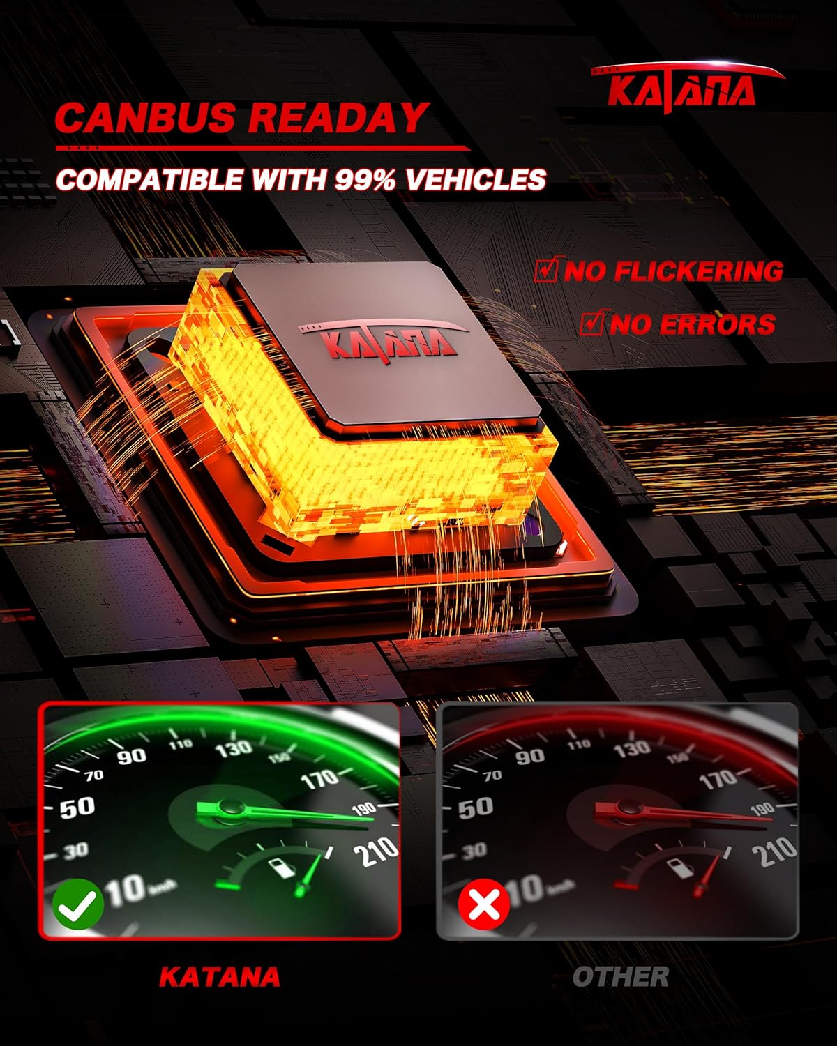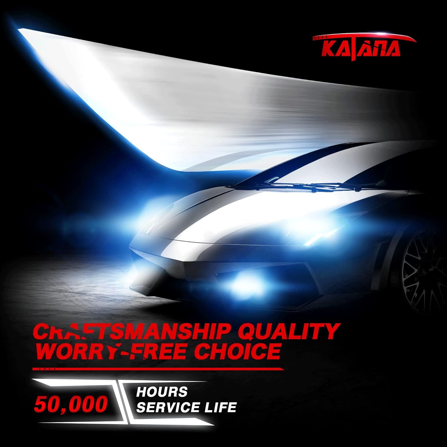 【400% Brighter】-KATANA fog light with 6500K white No dazzle,no blind corner. which brings 4 times brightness of the original bulb. allowing you to see clearer and wider driving vision.
