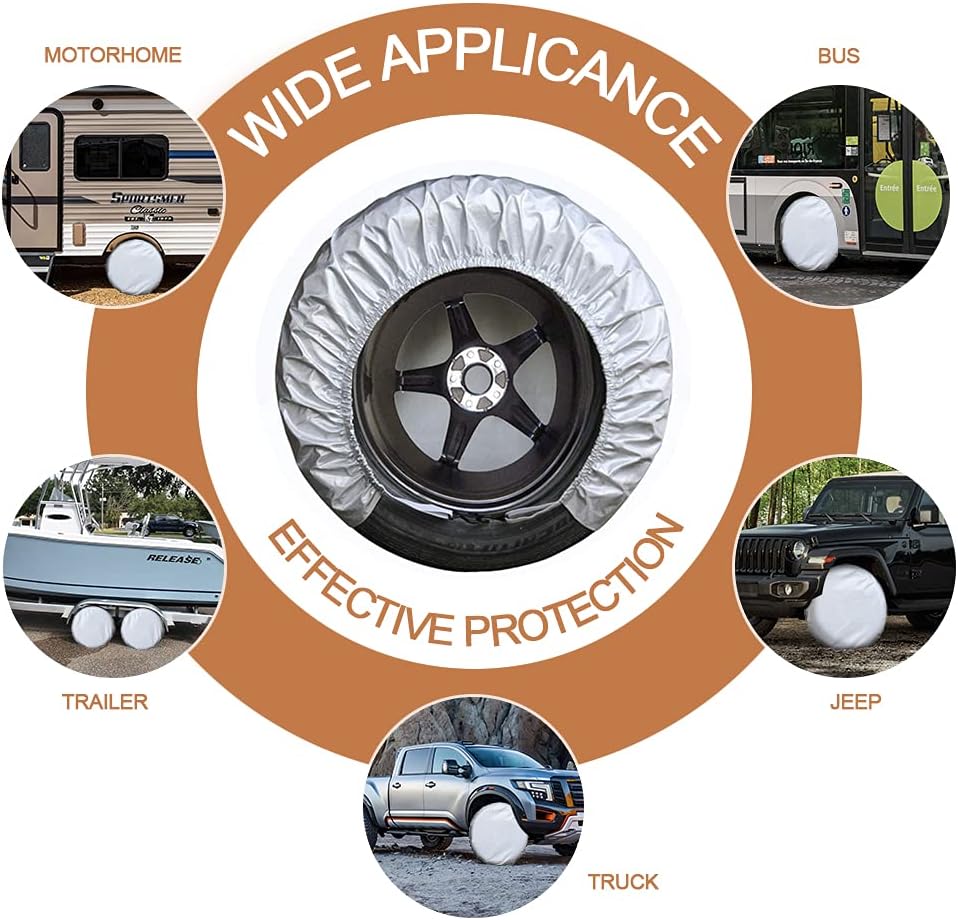 【 Model L 】— Universal fit 27-29 inch tire diameters (not the rim size). Use on rv, boat trailers, campers, jeeps, trucks and suv. Refer to our fitting guide picture(sixth picture) for size selection.