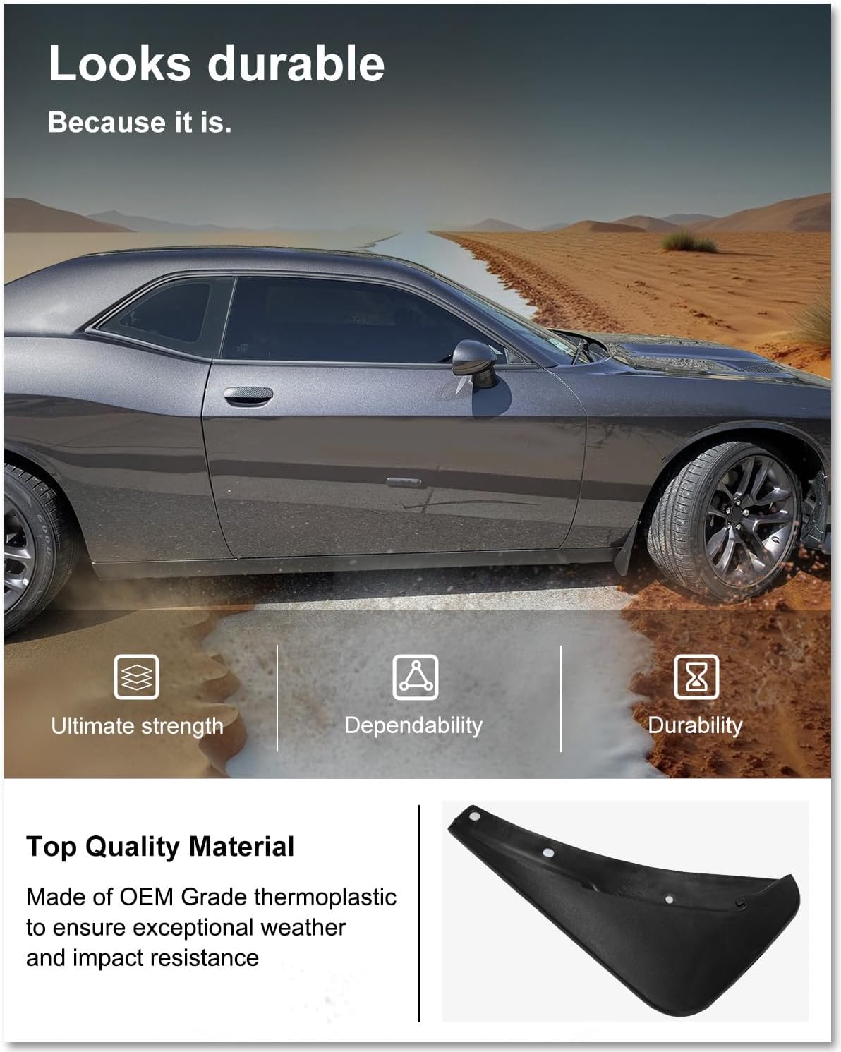▶ PERFECT FITS CHALLENGER MUD FLAPS – Compatible with 2015 2016 2017 2018 2019 2020 2021 2022 2023 Dodge Challenger ONLY, please check the year and the model of your car carefully before purchasing