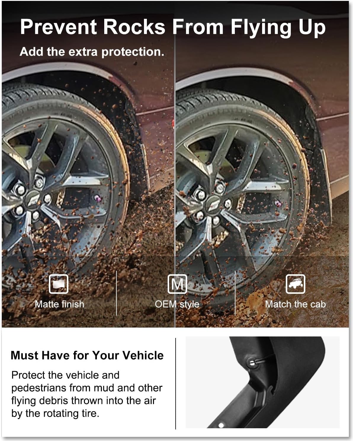 ▶ FANTASTIC FUNCTION – Looks great and fits perfectly,providing maximum tire coverage and protection;To prevent rain water and sediment out of the direct impact paint and to prevent mud splashing pedestrians