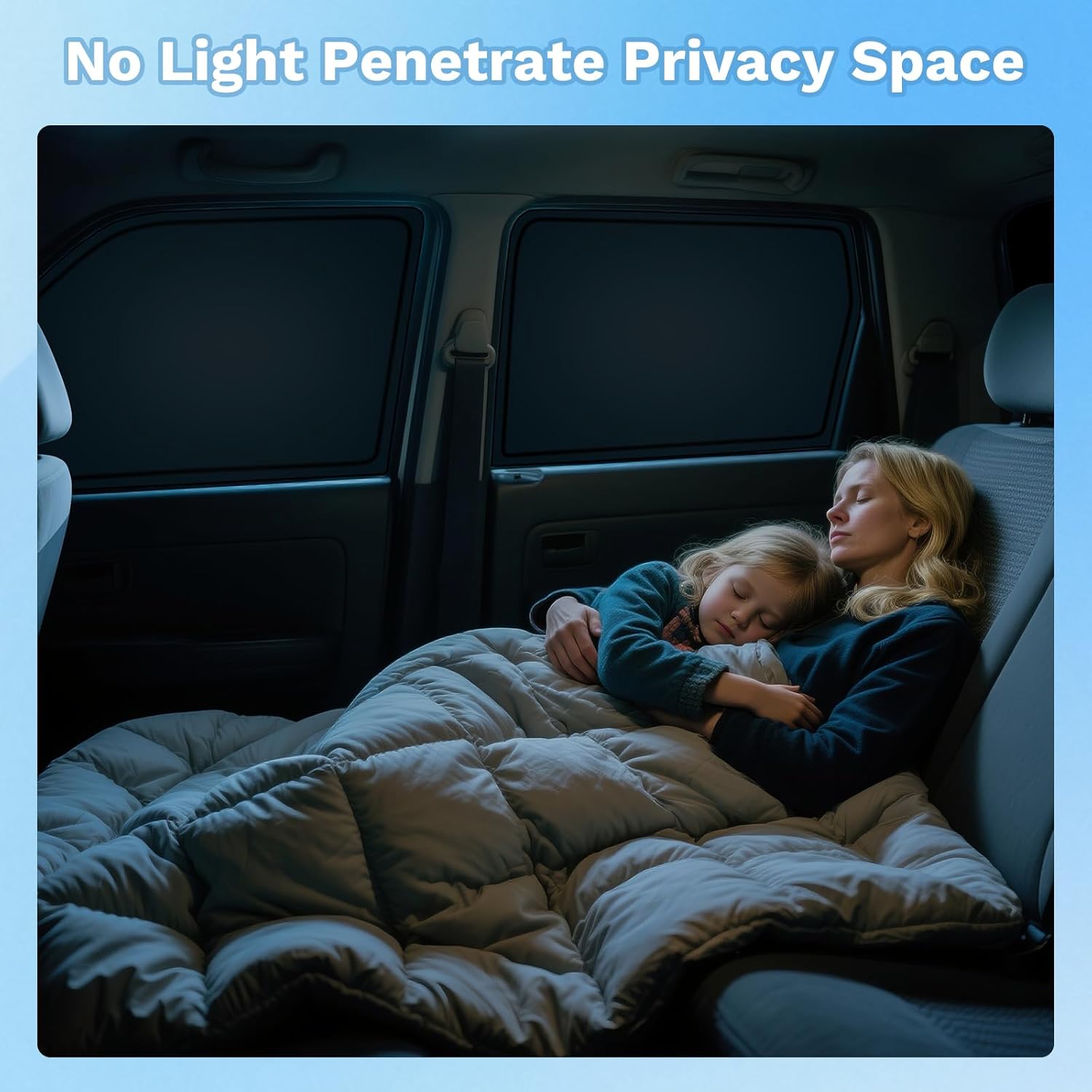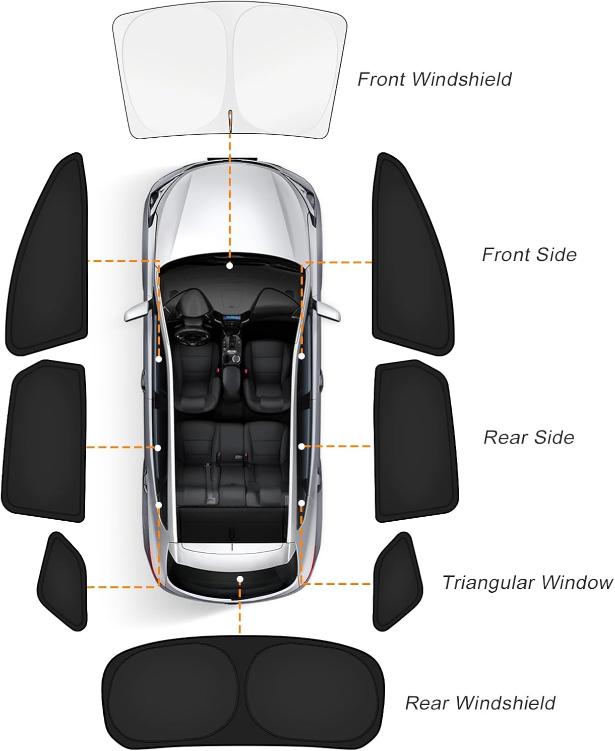 【8-Piece Full Set】 Package Includes windshield sun shade, side window sun shade, and rear windshield sunshade. Strong car shades for side windows are quickly transformed your entire car into a comfortable and dark space, perfect for resting, sleeping in the car. When you need a privacy space, simply spread those kit of window shade for car and install them without tools and efforts