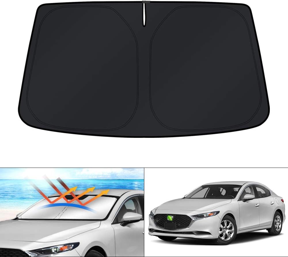 【Vehicle Specific】Our Windshield Shade Cover custom fit for Mazda 3 2014 2015 2016 2017 2018 2019 2020 2021 2022 2023 2024 2025 2026,Full covered your windshield,No Gap,100% Perfect fit.