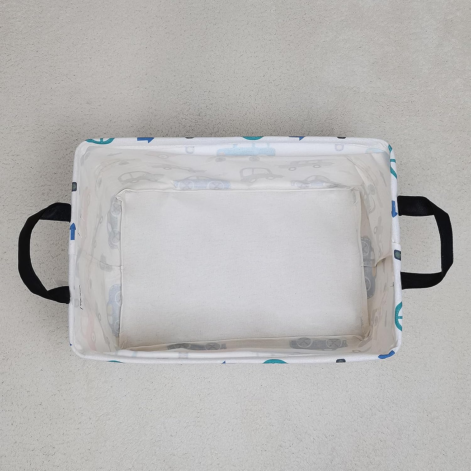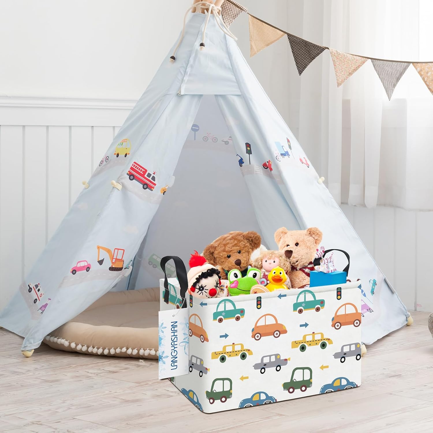 LANGYASHAN Rectangular Storage Bin Collapse Canvas Fabric Cartoon Storage Basket with Handles for Organizing Home Kitchen Boys and Girls Toys Office Closet Shelf Baskets(Rec Color Cars)