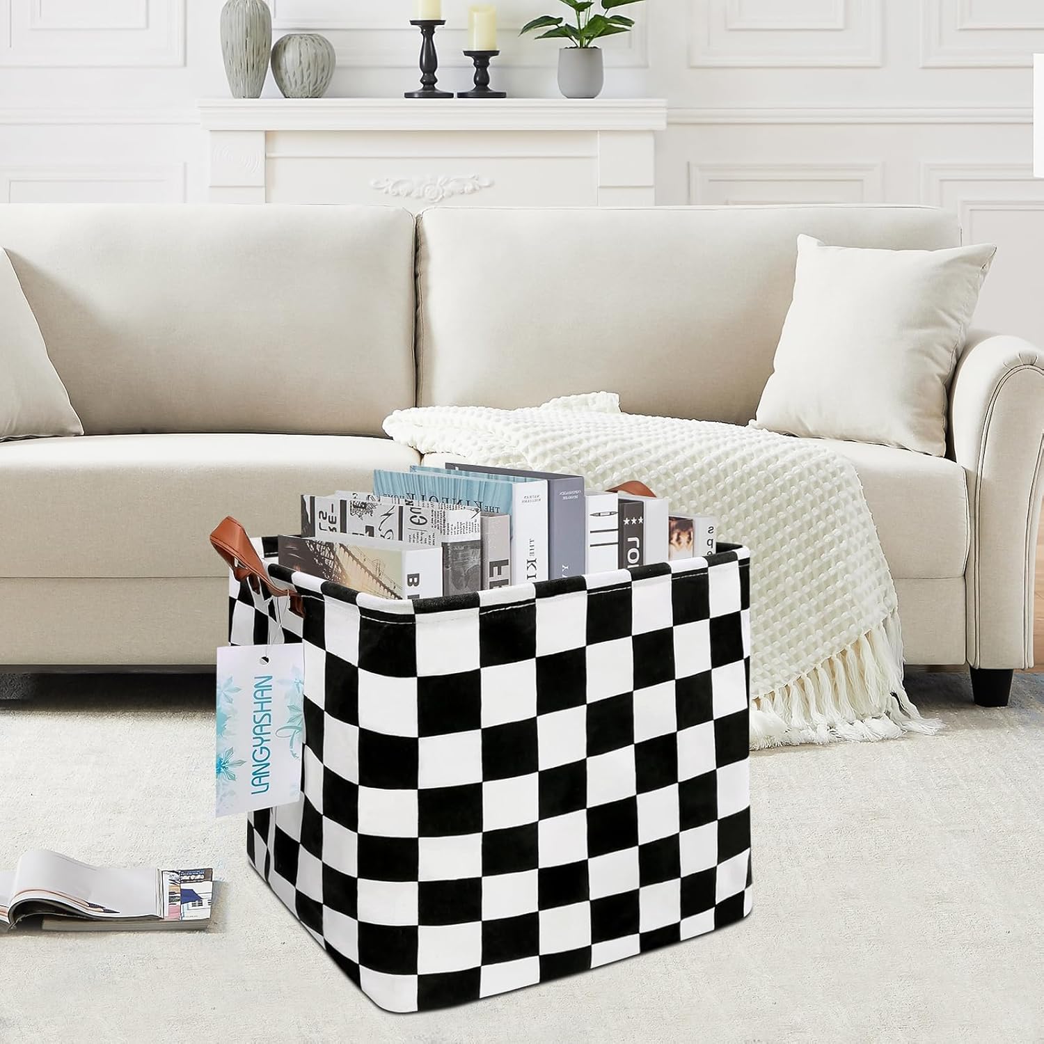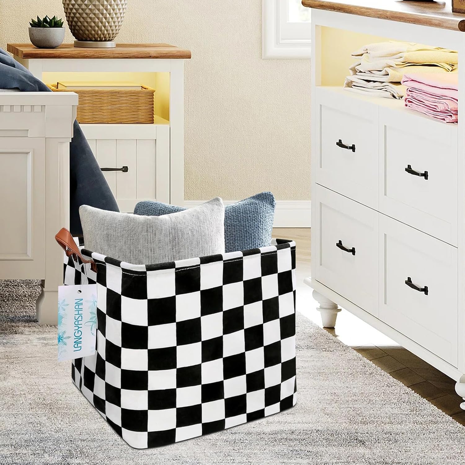 LANGYASHAN Square Storage Baskets Waterproof Canvas Children Laundry Nursery Hamper for Shelves Gift Baskets Toy Organizer Room Decor (Square Racing flag)