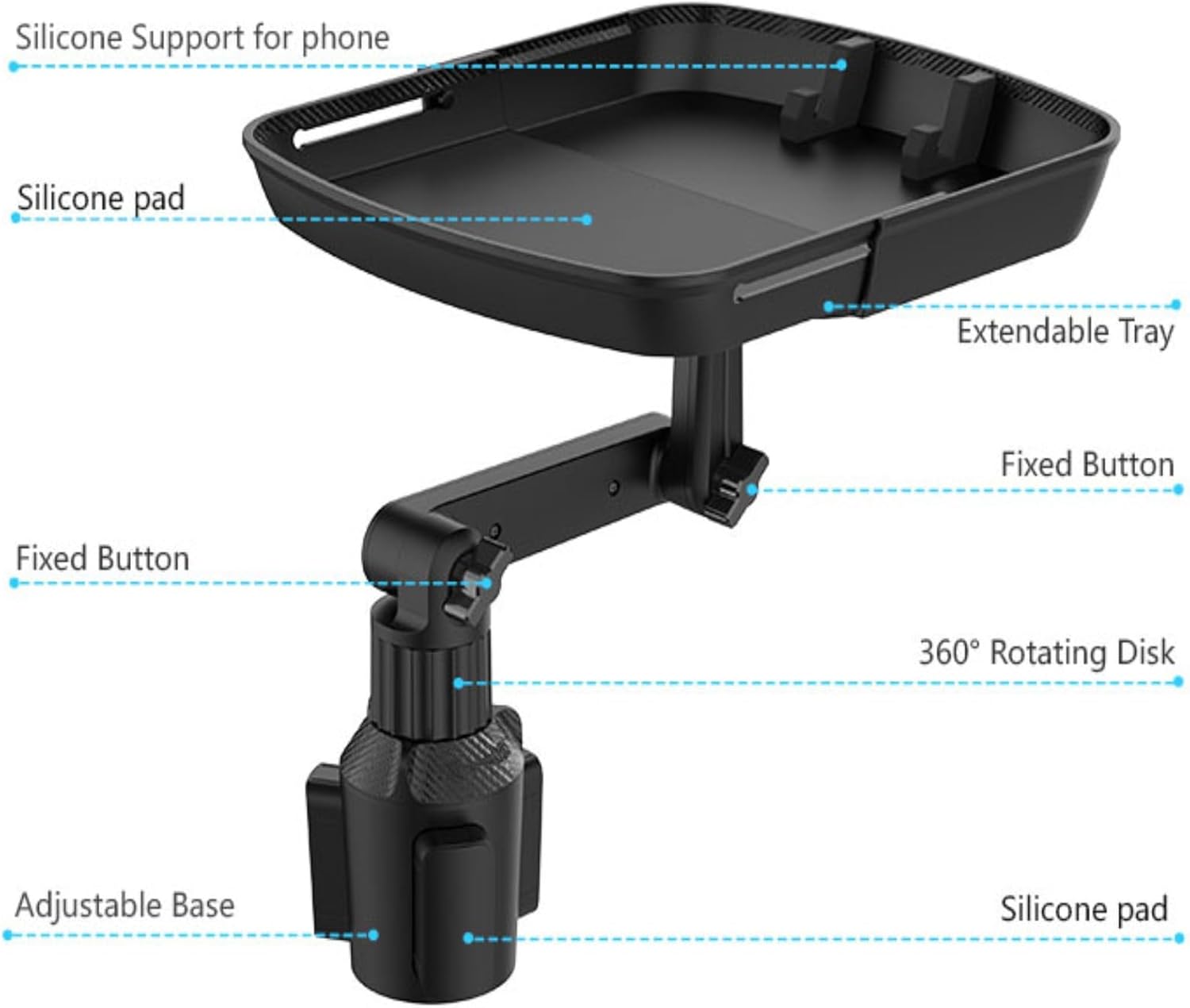 🚛 【Universal Fit – Expandable Base】The cup holder base is expandable to fit many different car cup holders. Adjustable base extends from 2.6″ to 3.6″. The silicone pads on the extensions provide strong friction to ensure that the base is firmly installed on various car cup holders and will not fall off.