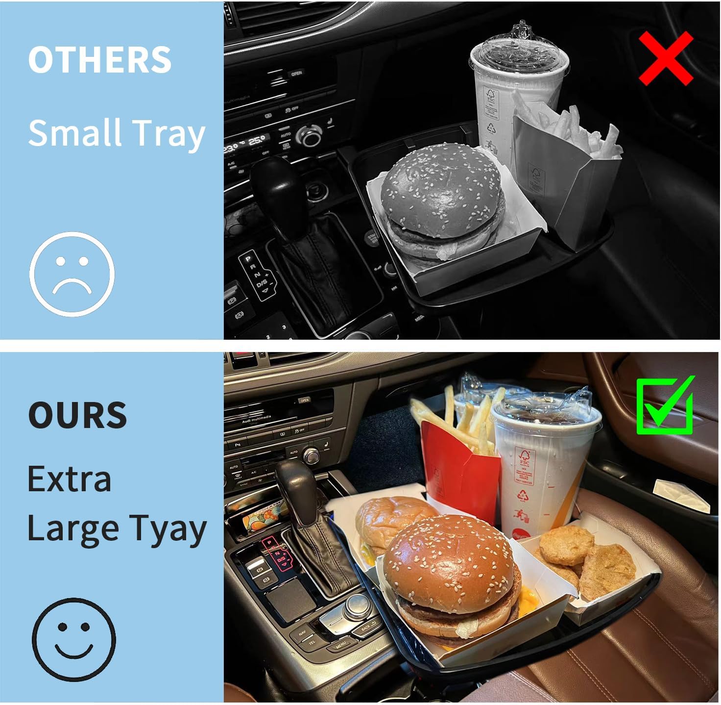 I was genuinely surprised by how practical this product is. I’ve already used it several times, and it really makes eating or organizing things in the car so much more comfortable. The tray is spacious and stable, and the 360° rotation lets me position it exactly where I need it without getting in the way.The cup holder expander works great, too; it fits firmly and doesn’t move while driving. The material feels sturdy and is easy to clean, which I really appreciate.Overall, this is an accessory that truly improves the in‑car experience. If you’re looking for something functional and well‑designed, this one is absolutely worth it.