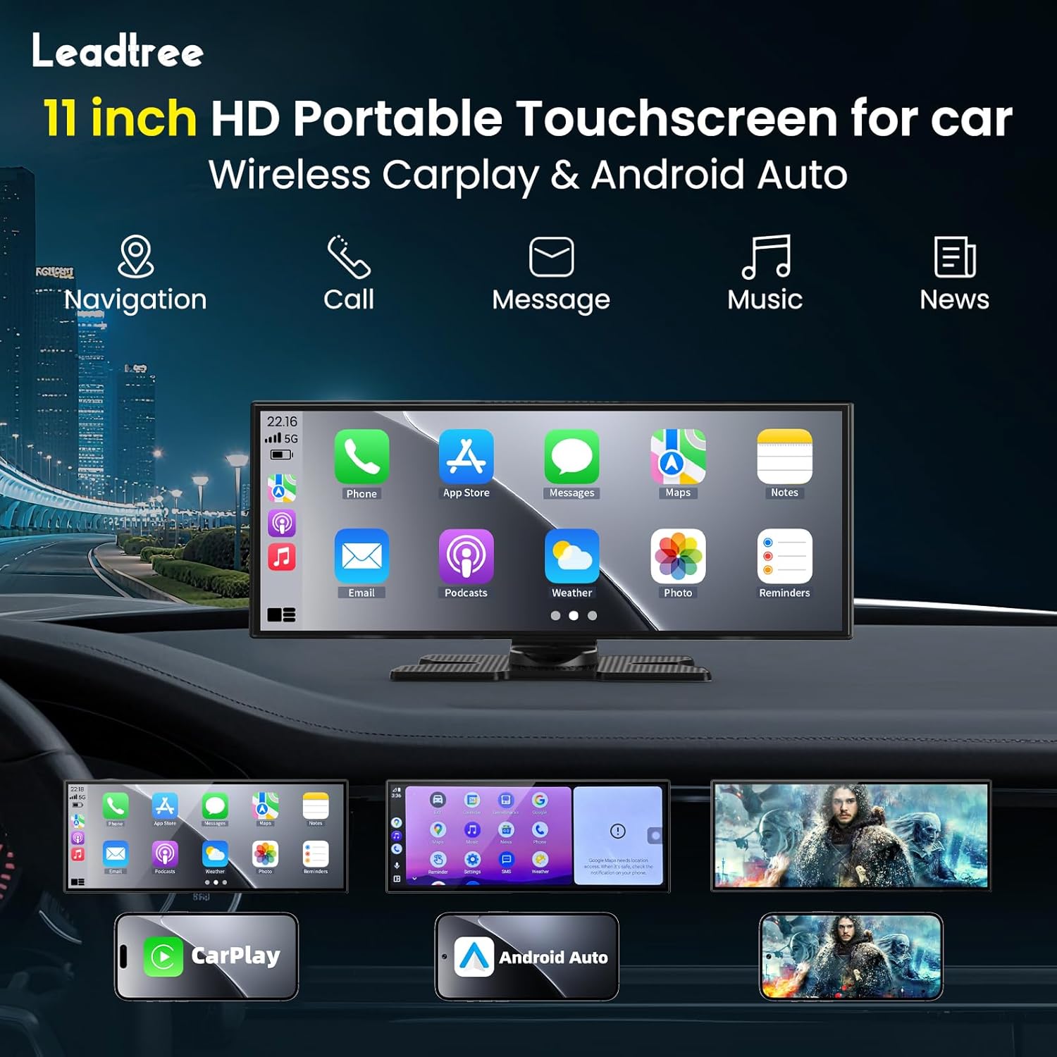 ⭐【Exclusive 11.5″ Carplay Screen】11.5-inch a-pple carplay screen for car is compatible with CarPlay and Android Auto, the largest touchscreen on the market, offers greater clarity for an enhanced video viewing experience. The touchable and viewable screen is larger than the 10.26-inch carplay screen, and the height of the portable carplay screen has been lowered compared to the 9-inch car play screen to address the issue of an obstructed driver’s view. Safer to use.