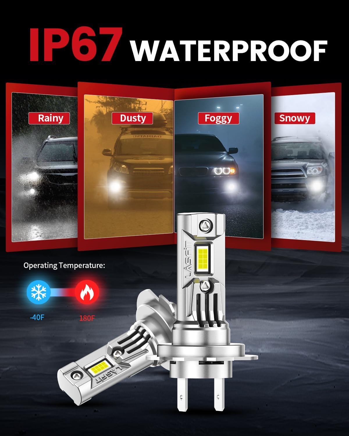 Perfect Beam Pattern: The 1:1 size bulbs feature a refraction focusing design that provides a clear and focused light beam, ensuring safety and reliability by eliminating dazzle and dark spots for oncoming drivers.