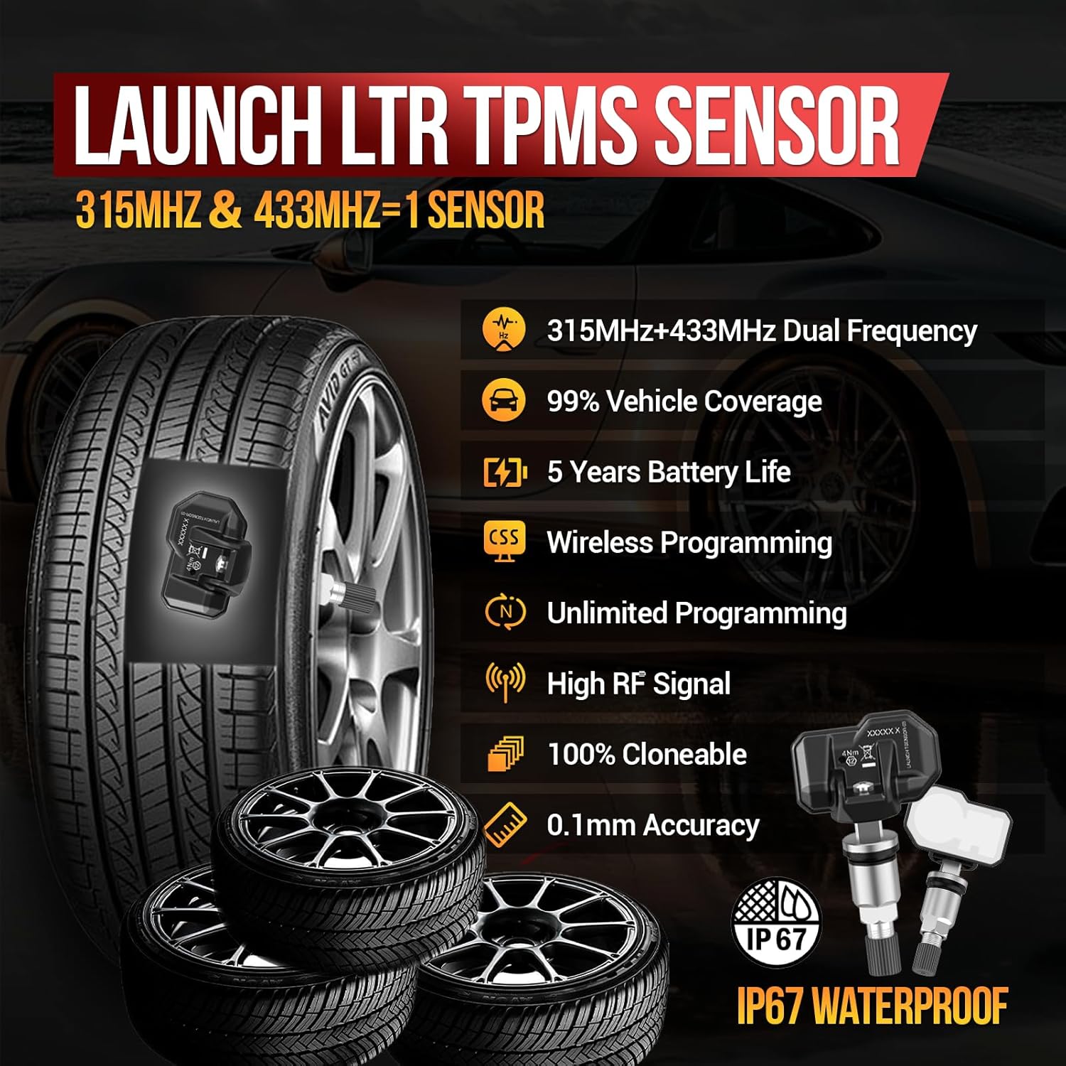 【2 In 1 Dual Frequency TPMS Sensor】: LAUNCH LTR-01 RF TPMS Sensor is designed to combine both 315 MHz & 433 MHz applications in one sensor, which enables you to install it on any type of tire or vehicle. It is very convenient for professional mechanic and DIY users.