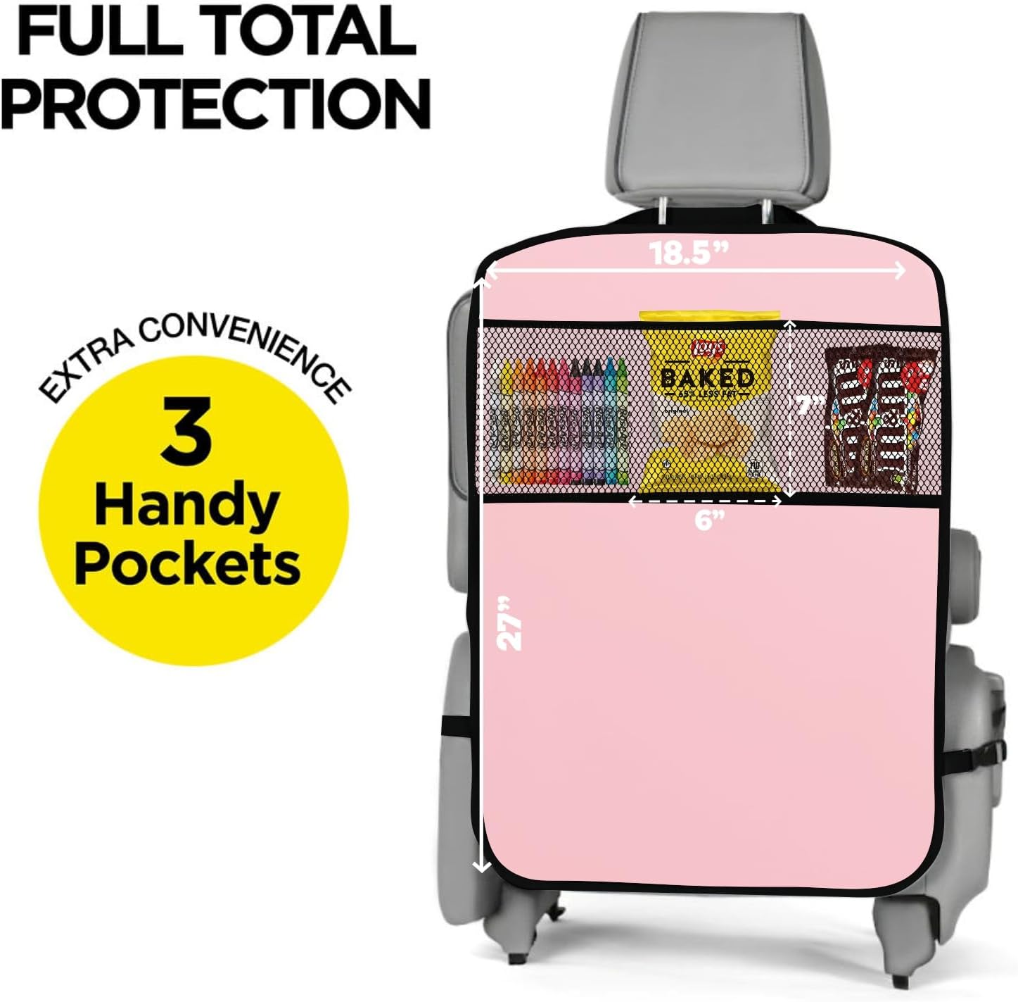 ✓ X-Large Coverage – Our Pink Back Seat Cover For Kids comes in a pack of two so both the driver and passenger seats can be protected, they include 3 handy storage pockets to keep all your children’s travel accessories organized. It measures 19” x 27” and adapts to all types of vehicles, so rest assured that it will securely cover the entire seat with a snug fit.