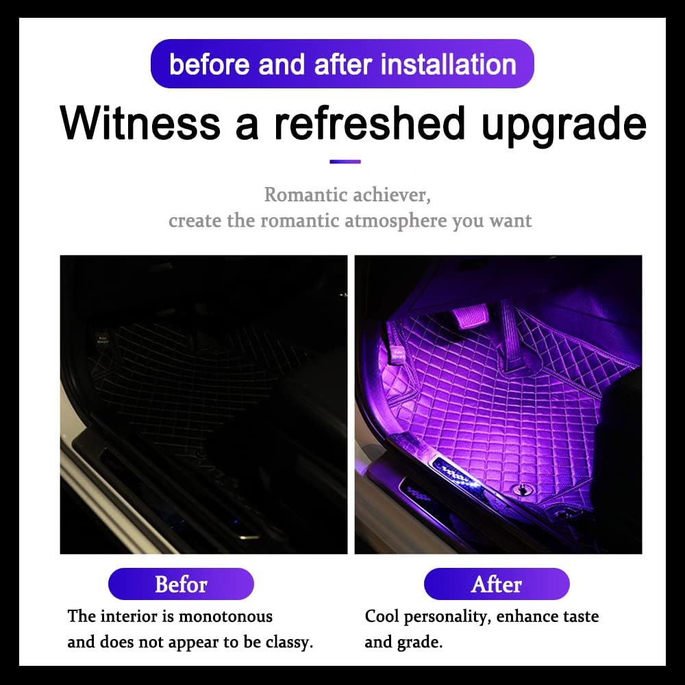 [Non-destructive installation]: Single light strip size 22.5 * 1.3 cm/ 8.86 * 0.511 inch,Do not need to modify, the product back with 3M tape, directly pasted in the need to install the position, simple and convenient. Simple design, for your car to create a romantic, beautiful atmosphere.