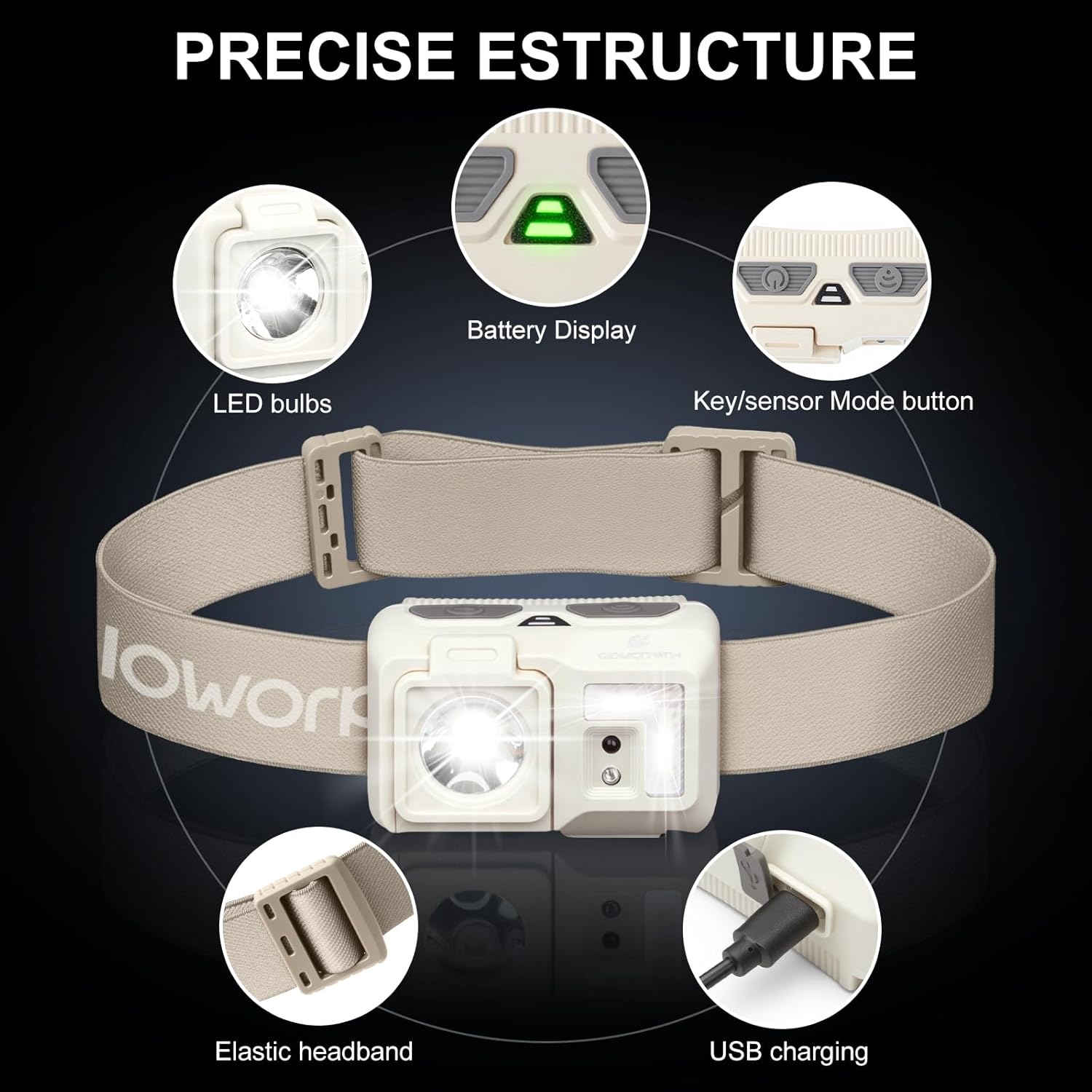 Advanced Beam Adjustment Headlamp: Unlike the old version, GloworPath rechargeable headlamp features an innovative angle adjustment mechanism. Instead of flipping the entire headlamp, you can freely change the beam direction by simply adjusting the bulb itself, making operation easier and faster. With a 60° adjustable range, it effortlessly adapts to various scenarios, ensuring the light always shines precisely where you need it.