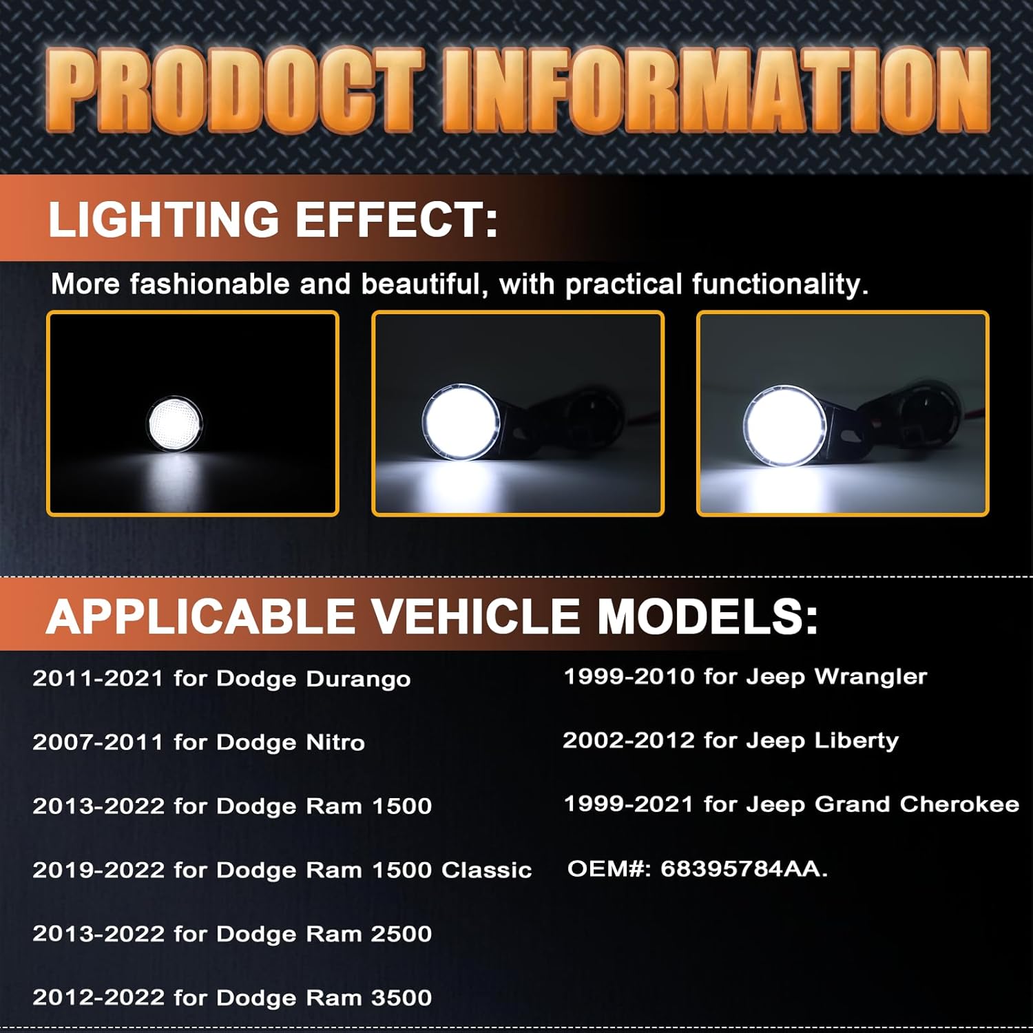 1. Perfect Compatibility – Specifically designed for 2011-2021 Dodge Durango, 2007-2011 for Dodge Nitro, 2013-2022 for Dodge Ram 1500, 2019-2022 for Dodge Ram 1500 Classic, 2013-2022 for Dodge Ram 2500, 2012-2022 for Dodge Ram 3500, 1999-2010 for Jeep Wrangler, 2002-2012 for Jeep Liberty, 1999-2021 for Jeep Grand Cherokee ; OEM#: 68395784AA.