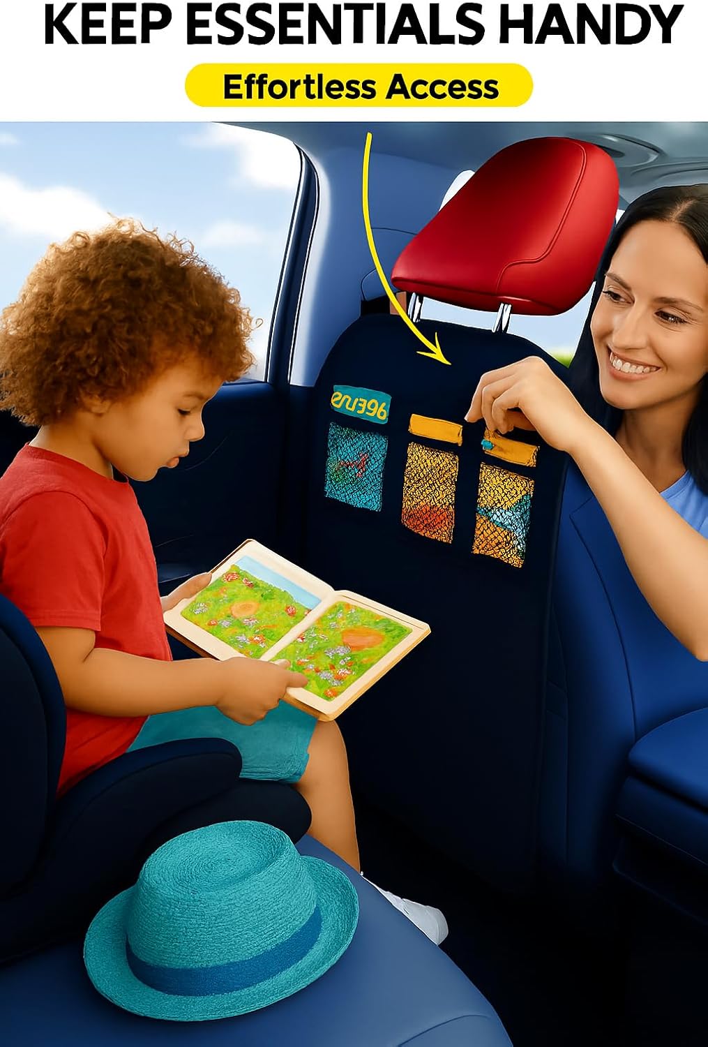 UNIVERSAL FIT: Compatible with most car, SUV, truck, and minivan front seat backs, featuring secure top and bottom anti-slip straps for stable installation
