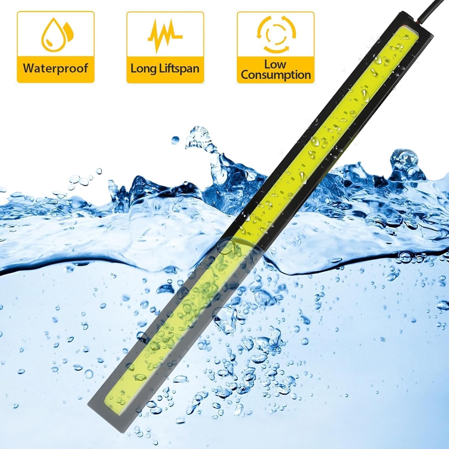 Super Bright & Safe Driving: Includes 12 LED COB strip lights with adhesive tapes for enhanced visibility in rain, fog, and night driving, ensuring safer travel conditions. Voltage Compatibility: Supports 12V only for optimal performance