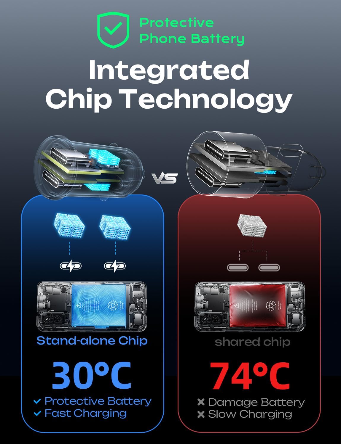 【ALL METAL, WON’T HEAT】The full aluminum body is scratch-resistant, durable, and attractive. The high-quality material keeps your car charger adapter always looking new. This metal USB car charger will not overheat at high temperatures, which makes it safer than plastic ones. Perfect for charging high-end phones like the iPhone 16 or Samsung Galaxy, while serving as a reliable 12V to USB adapter.