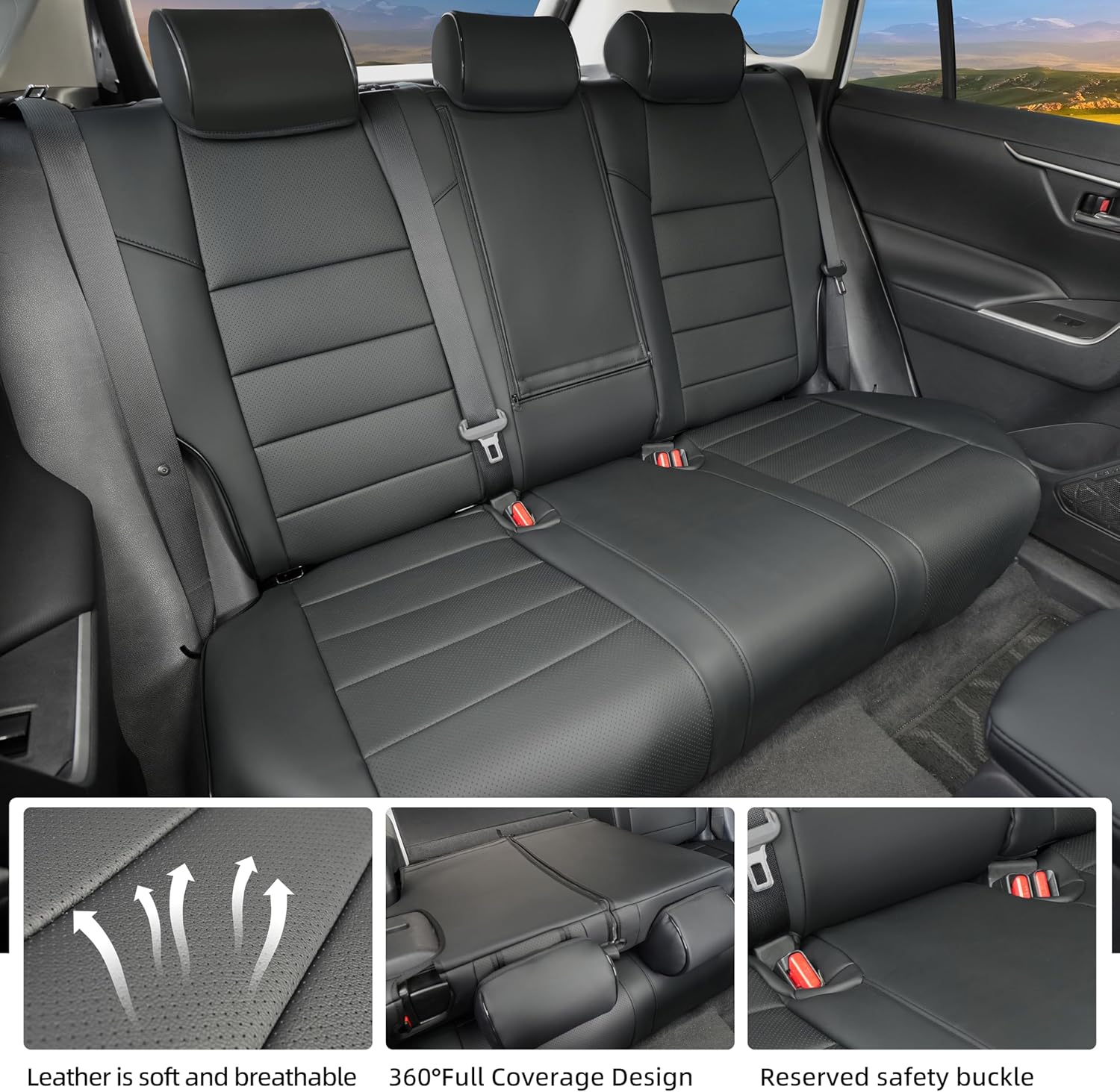 Lolcar RAV4 Seat Covers Custom Fit for Toyota RAV4(Gasoline) 2019 2020 2021 2022 2023 2024 2025 LE,XLE,XLE Premium,Limited,Airbag Compatible,Car Seat Cover Full Set for SUV, Waterproof Leather(Black)