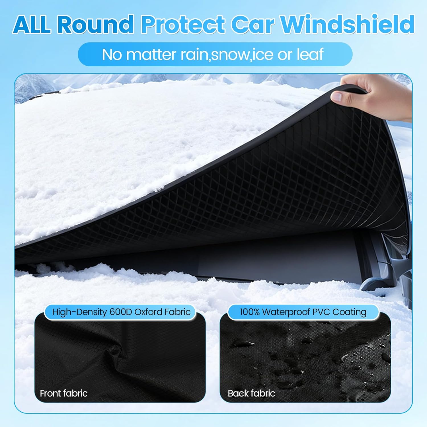 【All-Season, All-Weather Protection】This frost guard windshield cover shields your car from snow, hail, frost, wind, sunlight, rain, dust, leaves, bird droppings, and resin—no more worries about harsh elements. It’s a tough protector for your car year-round, not just winter.
