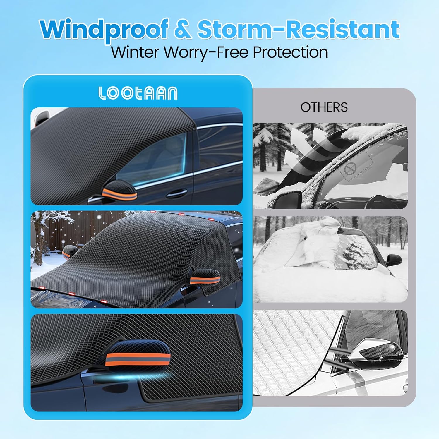 lootaan Windshield Cover for Ice and Snow – Heavy-Duty Winter Frost Guard with Side Mirror Pockets, Waterproof All-Weather Windproof Car Window Cover for Cars, Trucks, SUVs