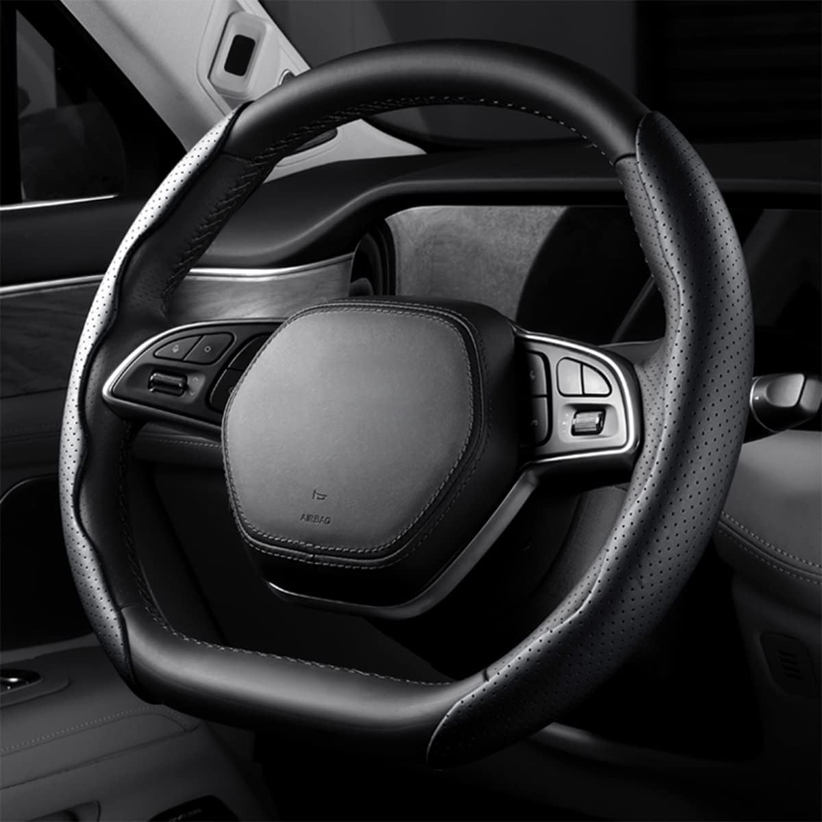 【Excellent Material】: This car steering wheel cover is made of high quality leather material, soft and foldable without cracking. It is light to the touch and fits tightly, with a strong grip and a comfortable experience, a long grip without getting tired. It is extremely easy to care for and can be wiped gently with a damp towel to clear most of the dirt.