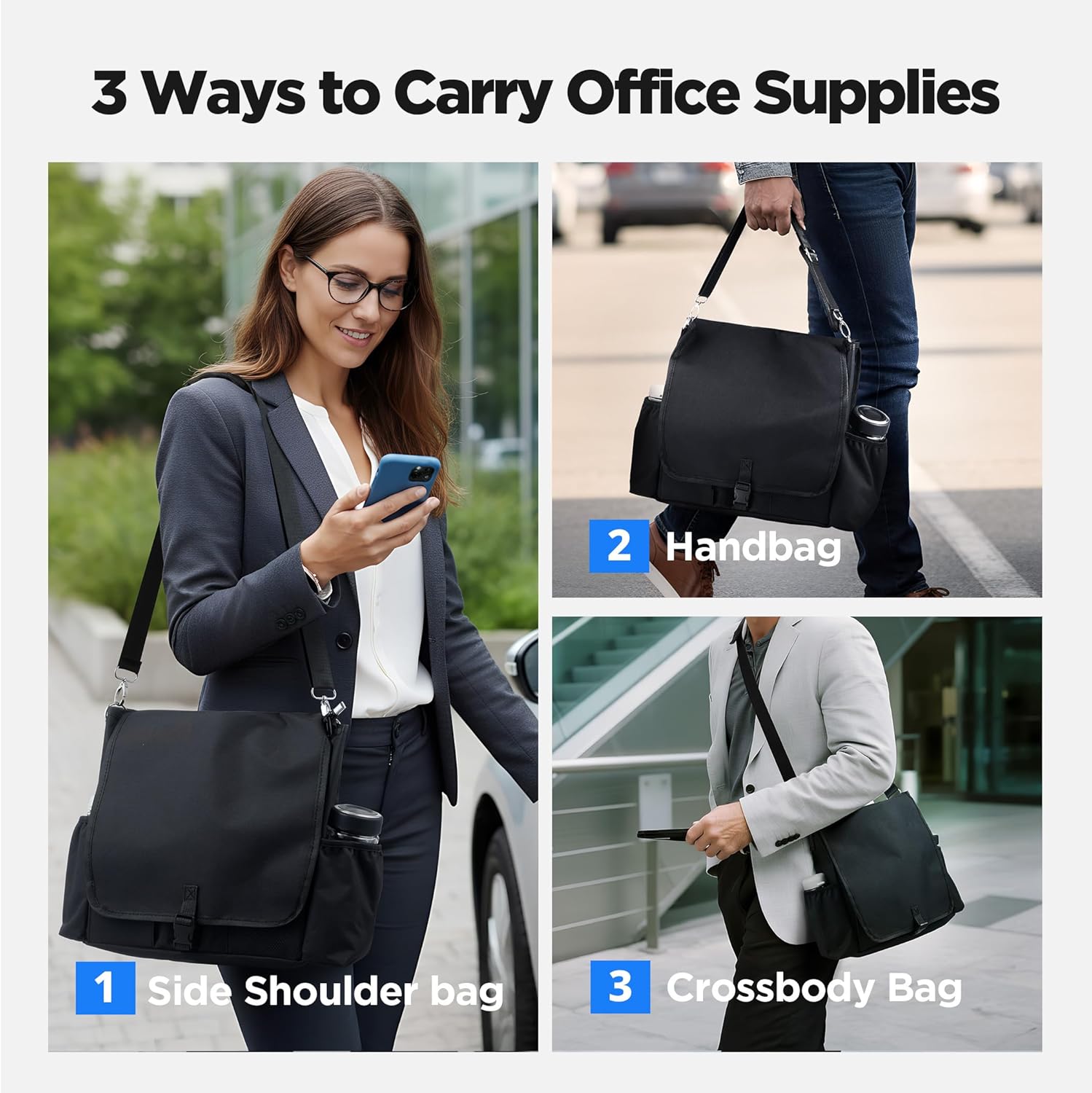 [Extra-Large Capacity]: ①Features 12 spacious, well-organized compartments for tools, folders, water bottles, phones, and everyday essentials. ②Holds large work items with ease, including a 3-ring binder, tablet, and even a 17-inch laptop. ③Smart compartment layout keeps items separated, visible, and easy to access.