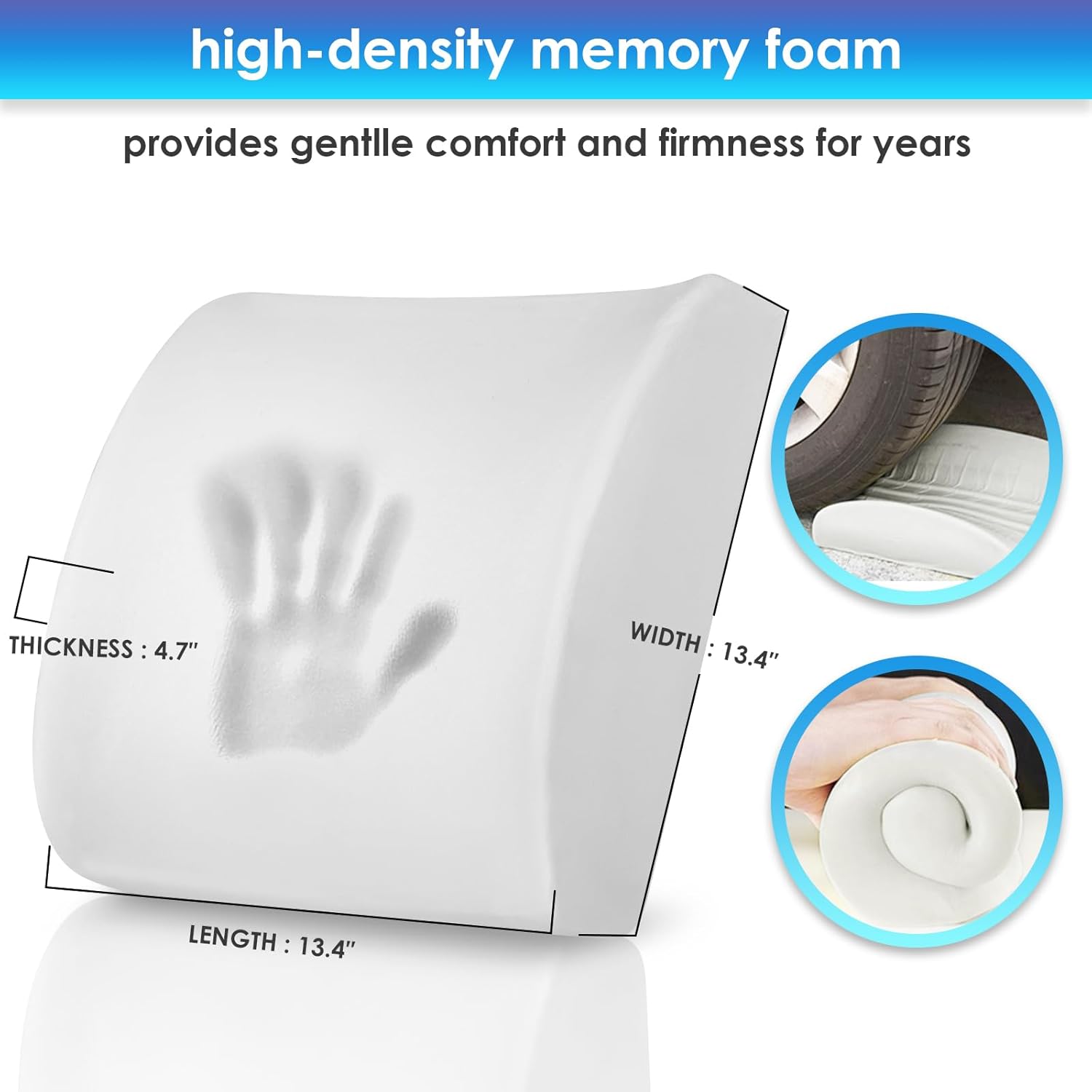 STURDY SUPPORTIVE AND EFFECTIVE- Ergonomic Streamlining molded with premium quality memory foam for optimal lumbar support and never flattens out. Proper firmness memory foam compress to take the shape of your back and curve, comforting the numbness of your back