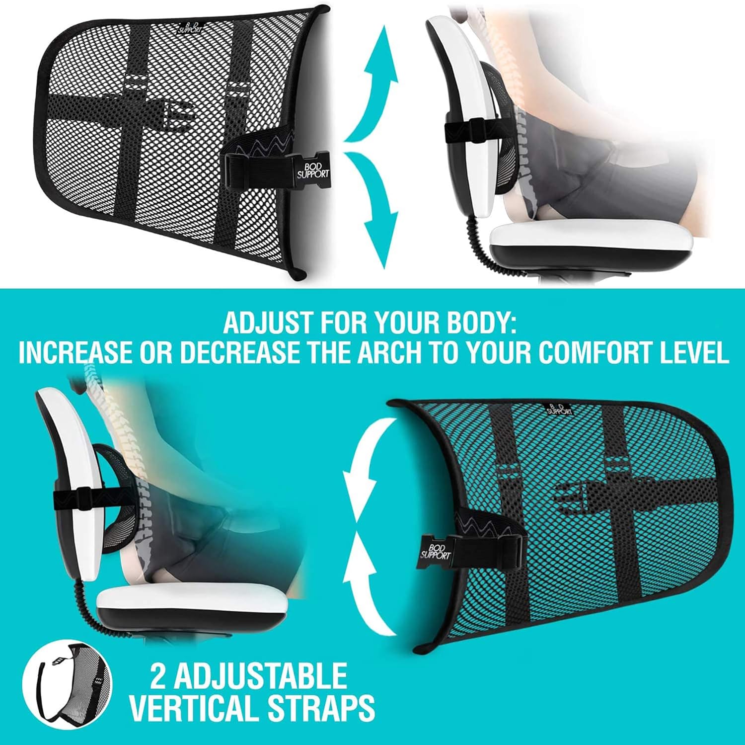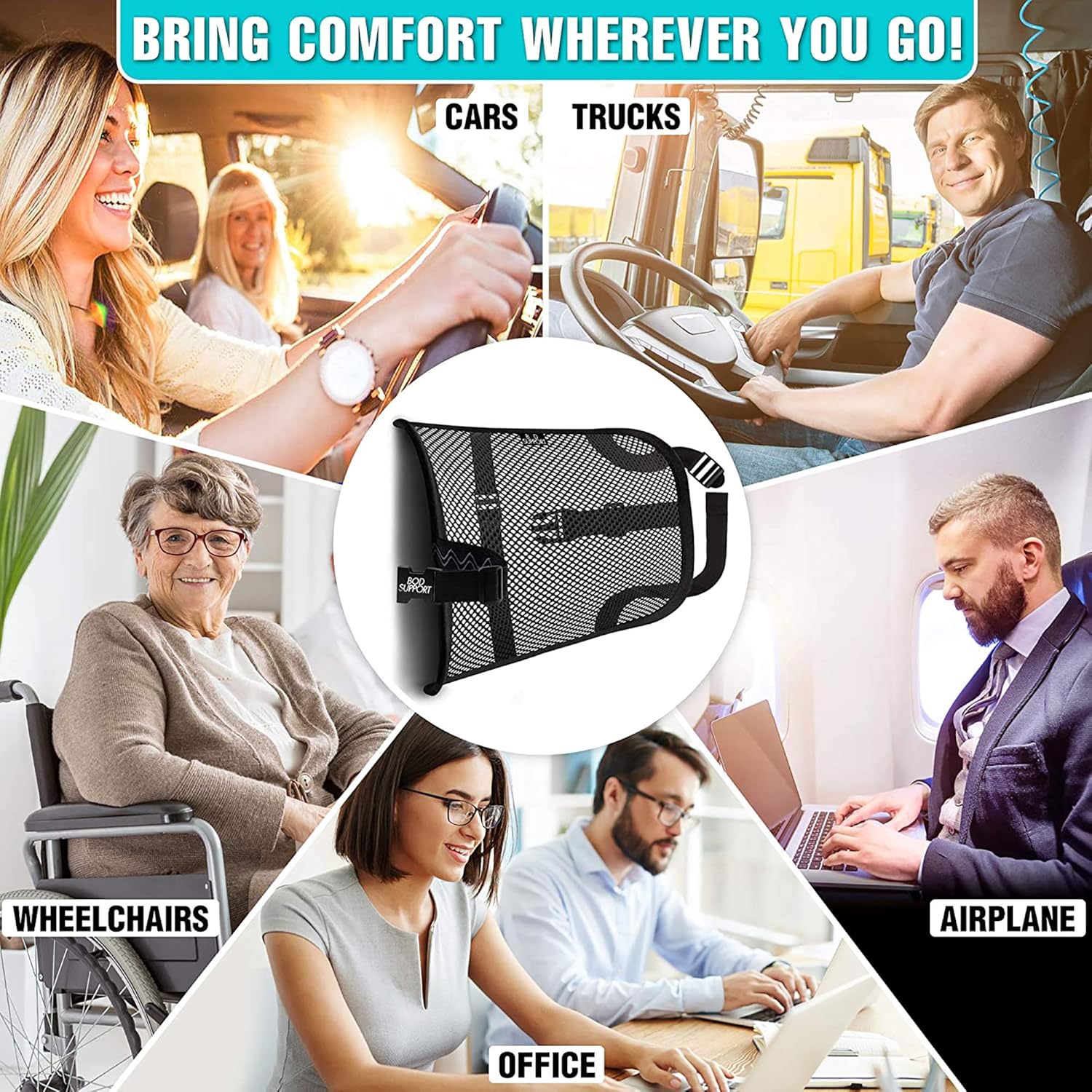 Lumbar Support – Breathable Mesh Office & Car Chair Back Support with Double Adjustable Straps for All-Day Comfort
