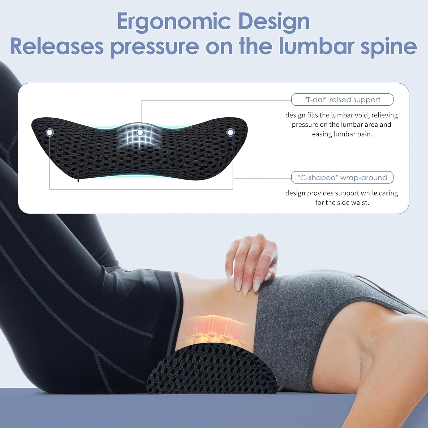【Relief the Pain】The lumbar support pillow used ergonomic design is adopted to fill the gap between the waist and the bed, fit the curve of the lumbar spine, and effectively relieve the pain caused by the waist, thereby reducing the burden on the back.