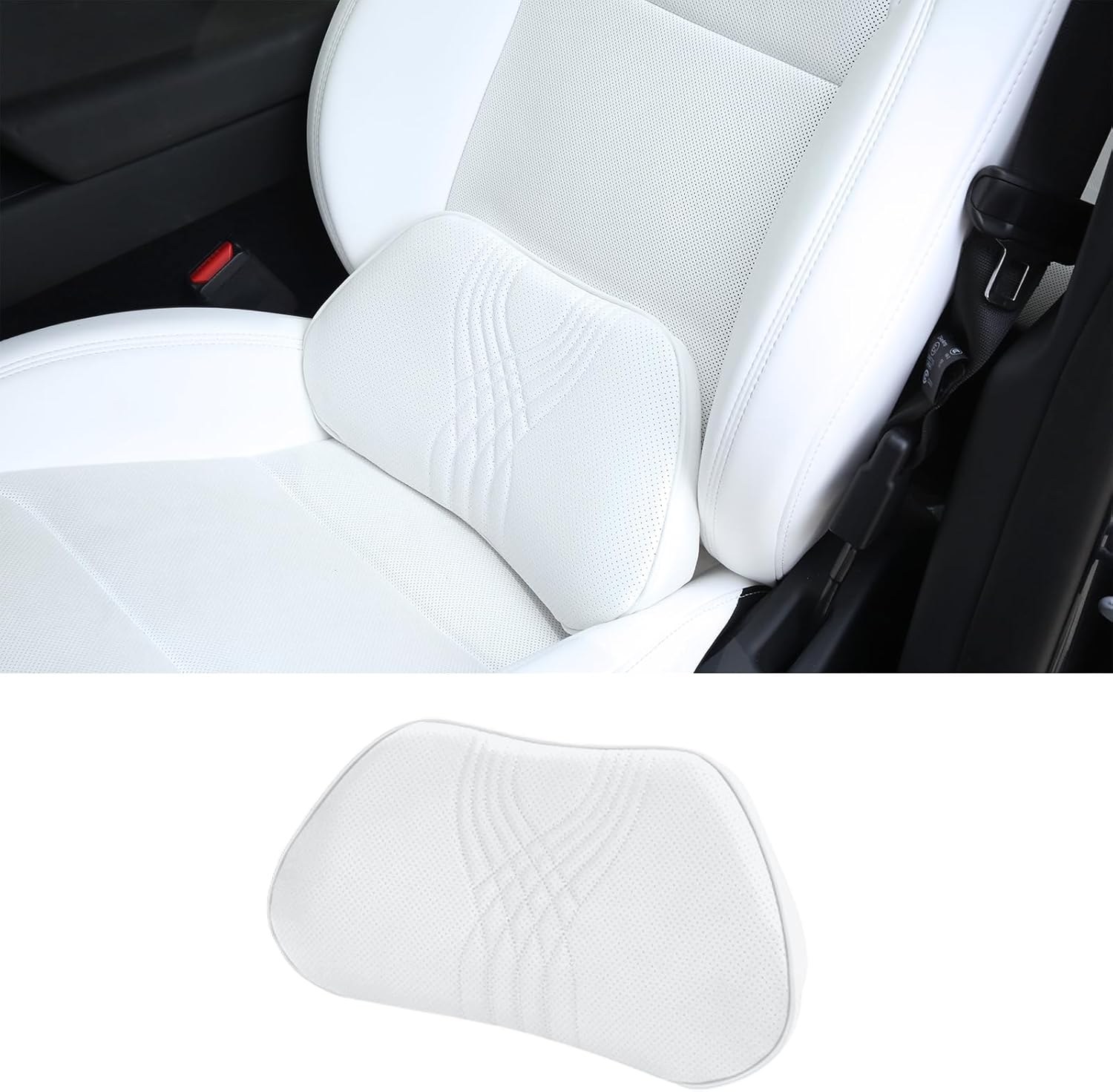 Memory foam pillows are plush and comfortable. Matches my white Tesla seats perfectly . They get stained very easily and constantly have to wipe it down to clean that would be the one reason I wouldn’t buy them again. I wish they had a bright red color. Not a fan of the maroon taco red they have.