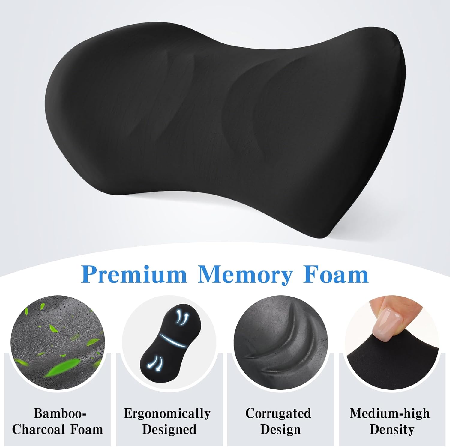 Ergonomic Memory Foam Construction: High-density memory foam provides optimal spinal alignment and pressure relief for prolonged sitting sessions in your car or office chair