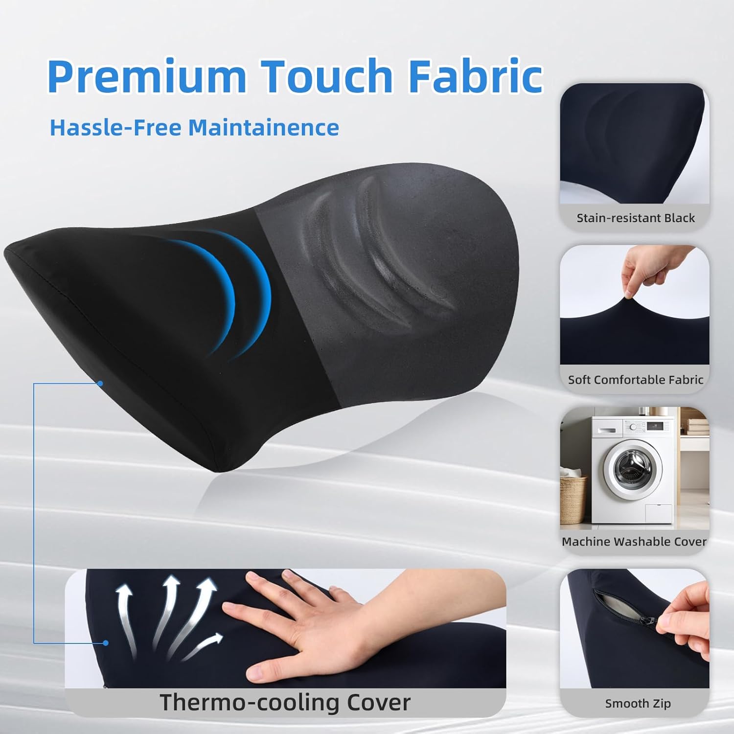 Hassle-Free Maintenance: Thanks to its removable cover, our chair back support pillow is machine washable. Simply remove the cover for effortless cleaning. Remember not to wash the pillow memory foam itself
