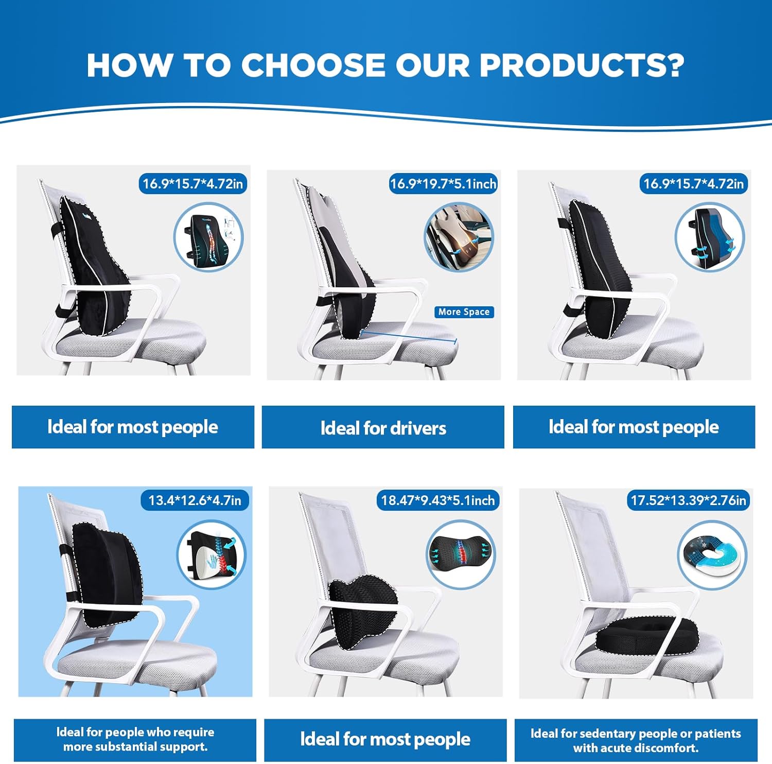 【Memory foam Support for Back and Lumbar】Memory foam backrest with soft fabric backing keeps shape and can be reused. Comes the elasticity, which makes our product support your back in a proper posture. Unlike other lumbar support pillow, our product with designed curve and waist embracing design, hold your back all the time. Suitable size for office workers, pregnant, drivers and students to improve their posture