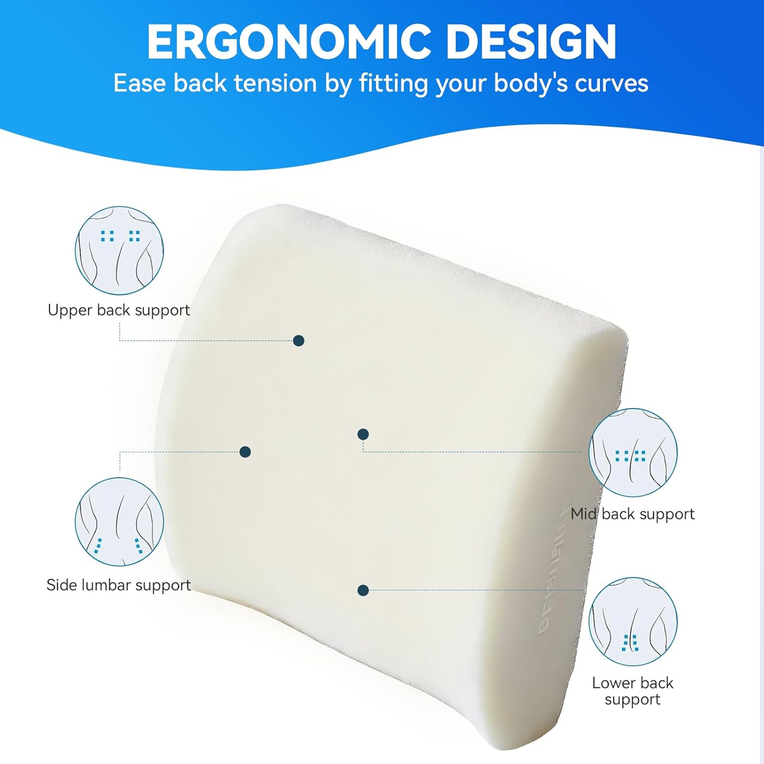 Lumbar Support Pillow for Office Chair, Gaming Chair, or Car, Memory Foam Cushion with Breathable Ventilated Mesh and Adjustable Straps for Long Lasting Back Support Ergonomic Suitable Gift