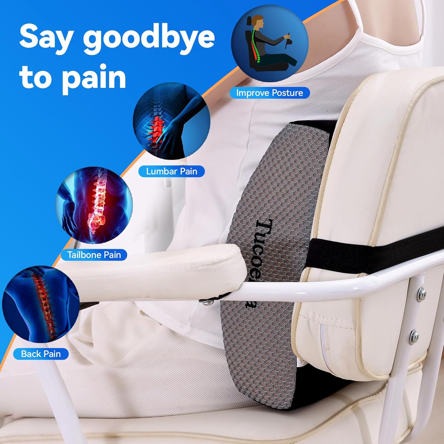 This Tucoekta Support Pillow gave me a lot of needed support and comfort when I sit at my desk. I ordered this for my personal use but also for my grandma who has spine issues. This pillow is a perfect in between of cloud cushion but firm support. It has a lightweight and compact design for easy travel and portability. It also has a ventilated mesh cover for of course ventilation for those who get hot quickly. It was also convenient out of the box and was ready to use immediately. The cushion itself is very soft and comfortable but it also rebounds pretty quickly. This is among the more consistent cushions I’ve used over the years. The pillow is curved for back support and ergonomics which also help with sitting posture for long durations. To attach the pillow, there’s an adjustable elastic strap with a buckle, super simple. Overall, I found this lumbar support pillow to be exactly what it was and I am extremely satisfied with the comfort and support I get from it. I rate it 5 stars and I recommend it.