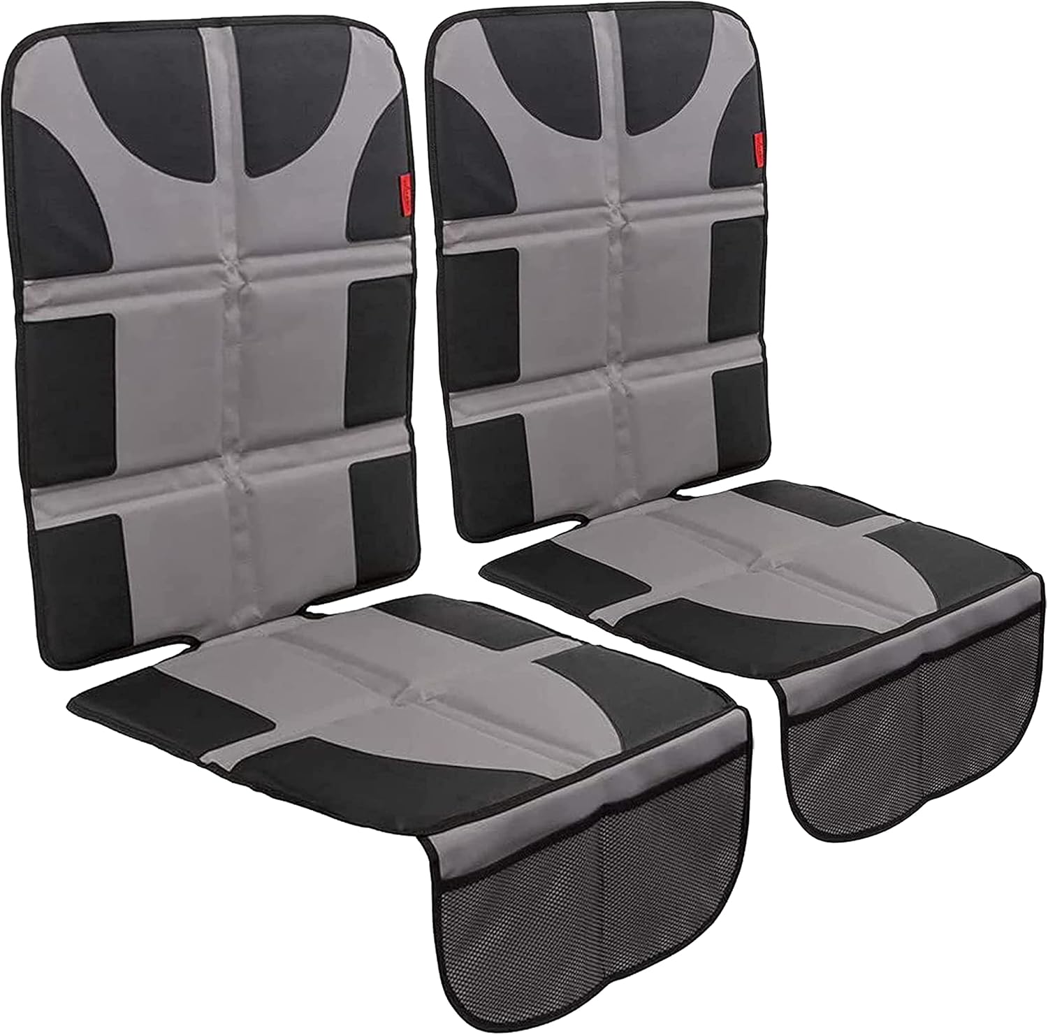 Lusso Gear Car Seat Protector – 2-Pack Waterproof Padded Shield & Mesh Pockets for Baby Travel Gear – Universal Fit Seat Covers for Cars & SUVs – Non-Slip Heavy-Duty Protection – Gray, Universal Fit