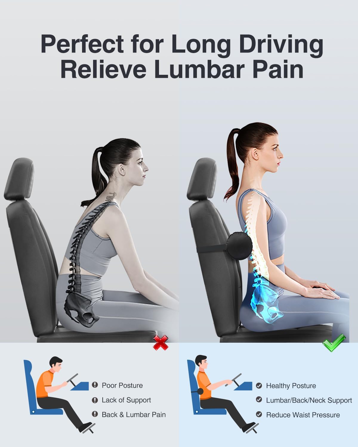 Versatile Usage: This inflatable back support pillow isn’t limited to use for long driving and airplane travel, when you spend a lot of time sitting on office chair or gaming chair, please use it to prevent and relieve lower back pain, and its cylindrical shape also can be used as neck pillow.