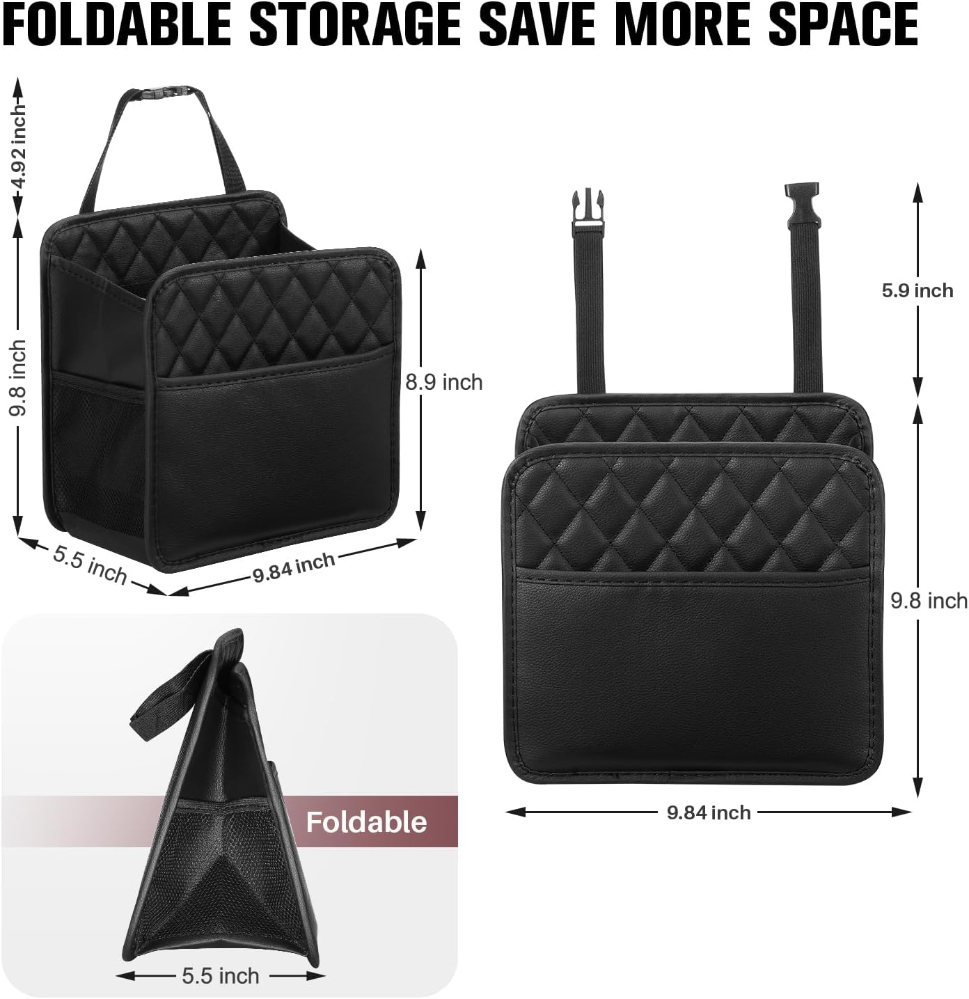 【Multifunctional Car Seat Storage】 This car back seat organizer can not only be used as a car seat organizer, but also can be used as mini car trash can . Double sided and front mesh bag design, convenient and practical for storage small items. The front and side mesh pockets of the small car trash can can hold small items such as wet wipes and towels. Also this car front seat organizer is suitable for home, office.