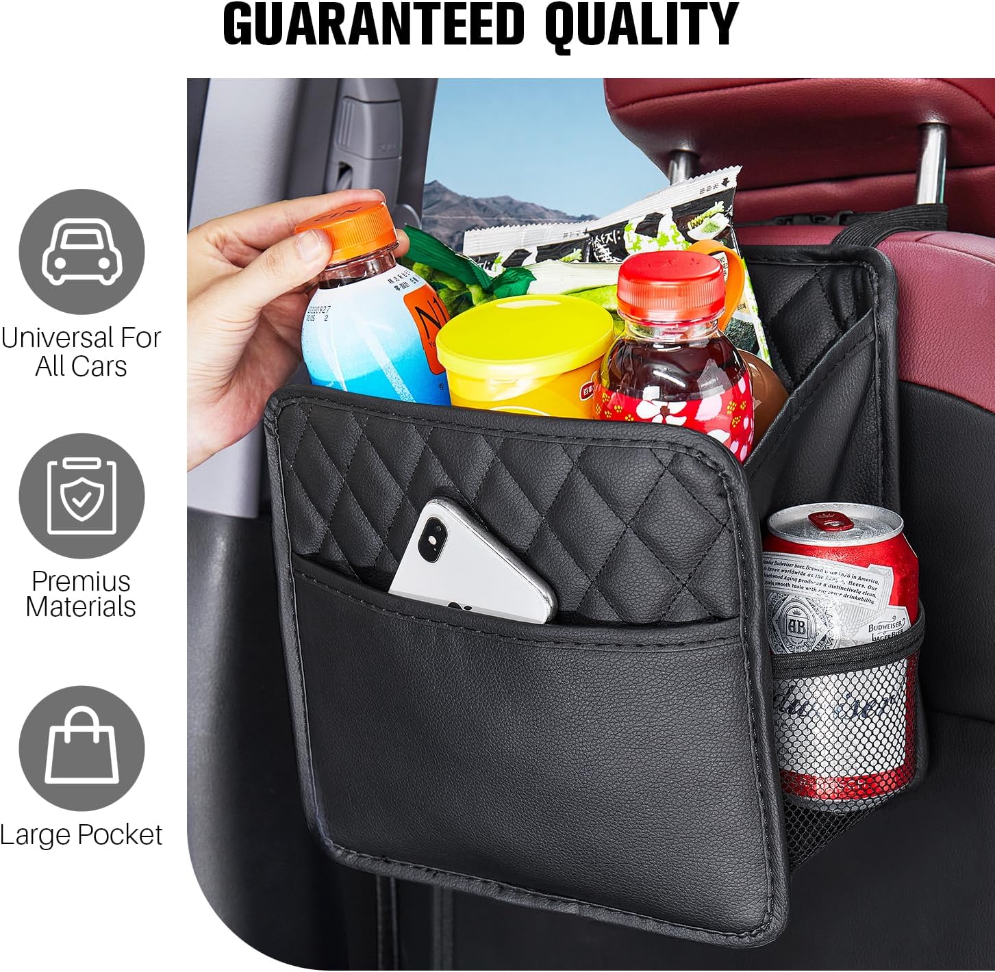 Double sided mesh bag design, convenient and practical for storage small items and cup holders with LXUNYI backseat cup holder for car.