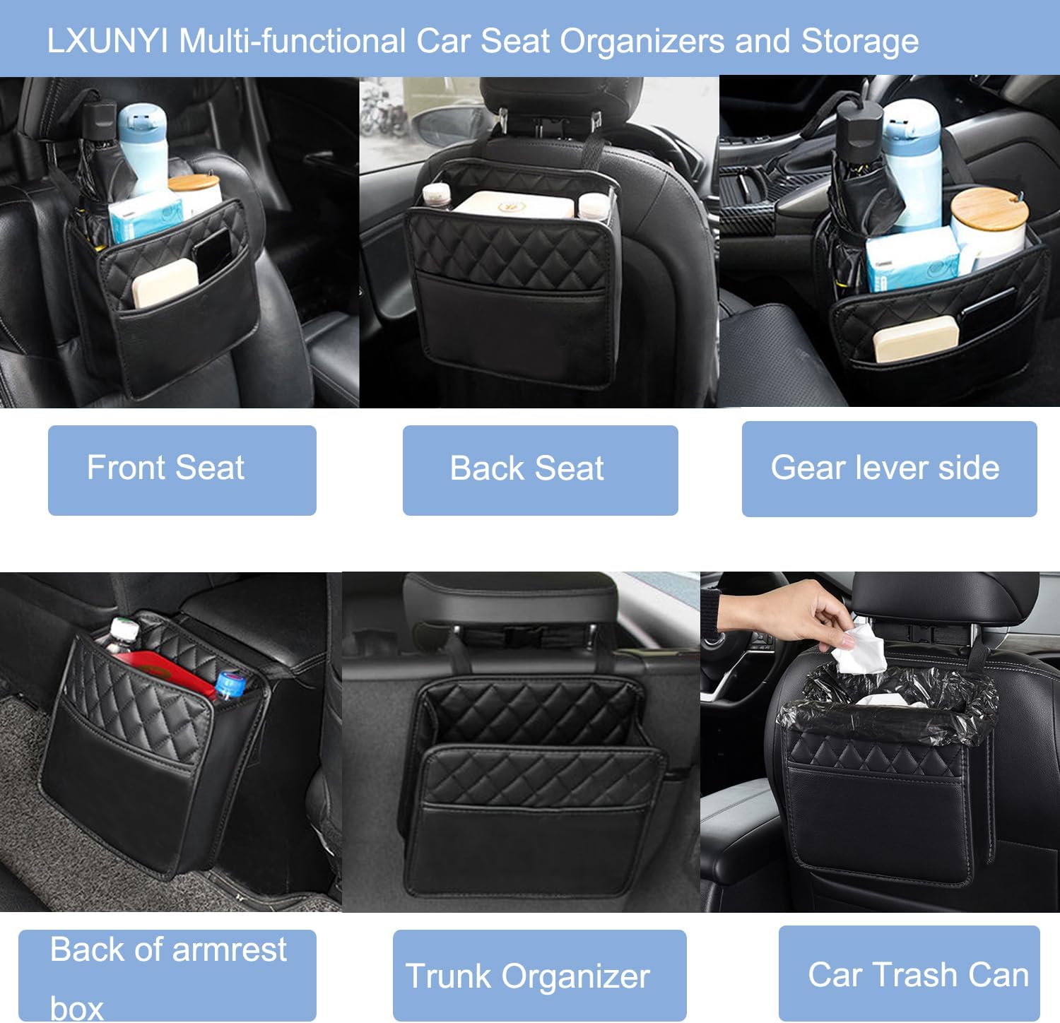 【High Quality Leather Material】LXUNYI car seat organizer backseat is made of high-quality durable soft waterproof Pu leather, which is easy to clean and long service life, so that your car can be kept clean and tidy with the car seat storage organizer. Soft lining with a Elastic Band to make the items you put in stable , don’t worry about bumping into the body or the items fall out when you use.