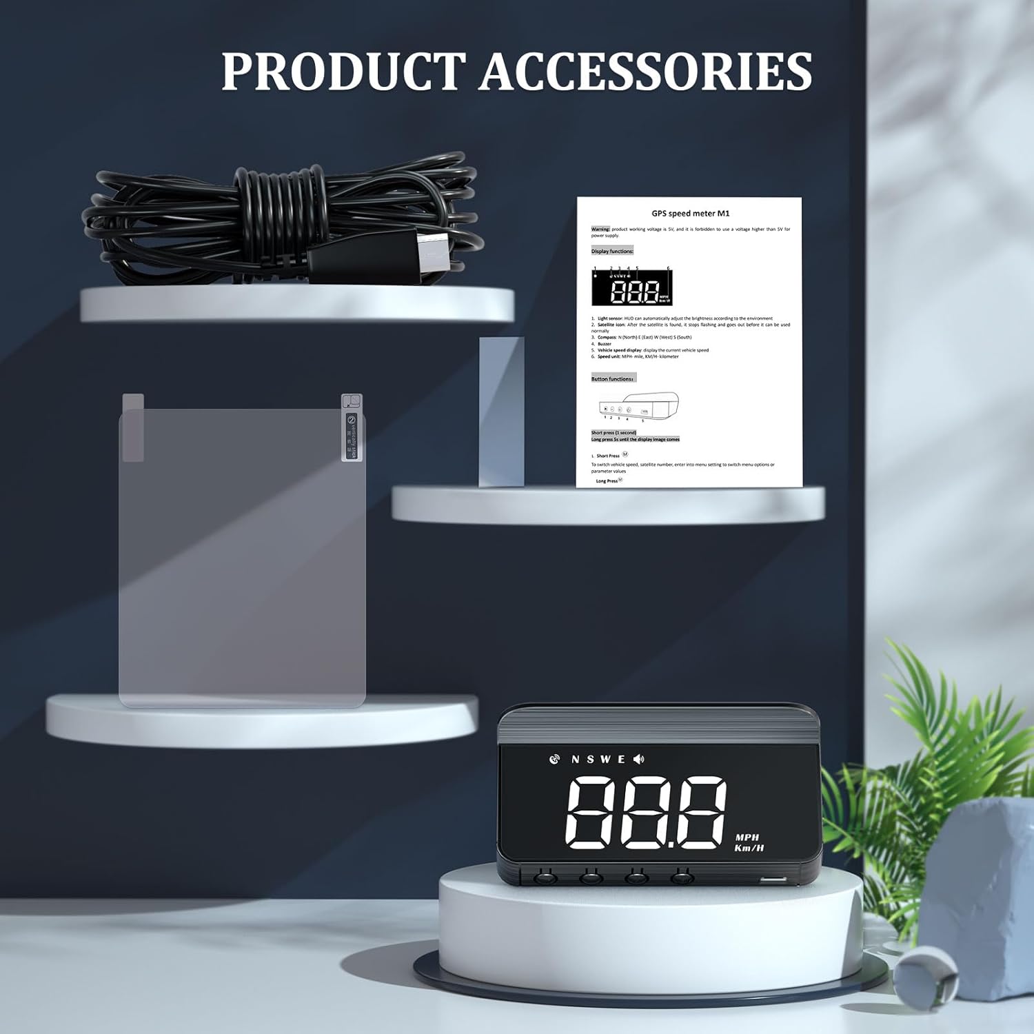 【Instructions for use】Our product is easy to install, plug and play, just use the usb cable included inside the product to connect the car and the product, start the engine to power on and use. When you find the small icon on the product is flashing constantly, it means the product is collecting satellites, and the speed will be displayed only when the device searches for satellites.
