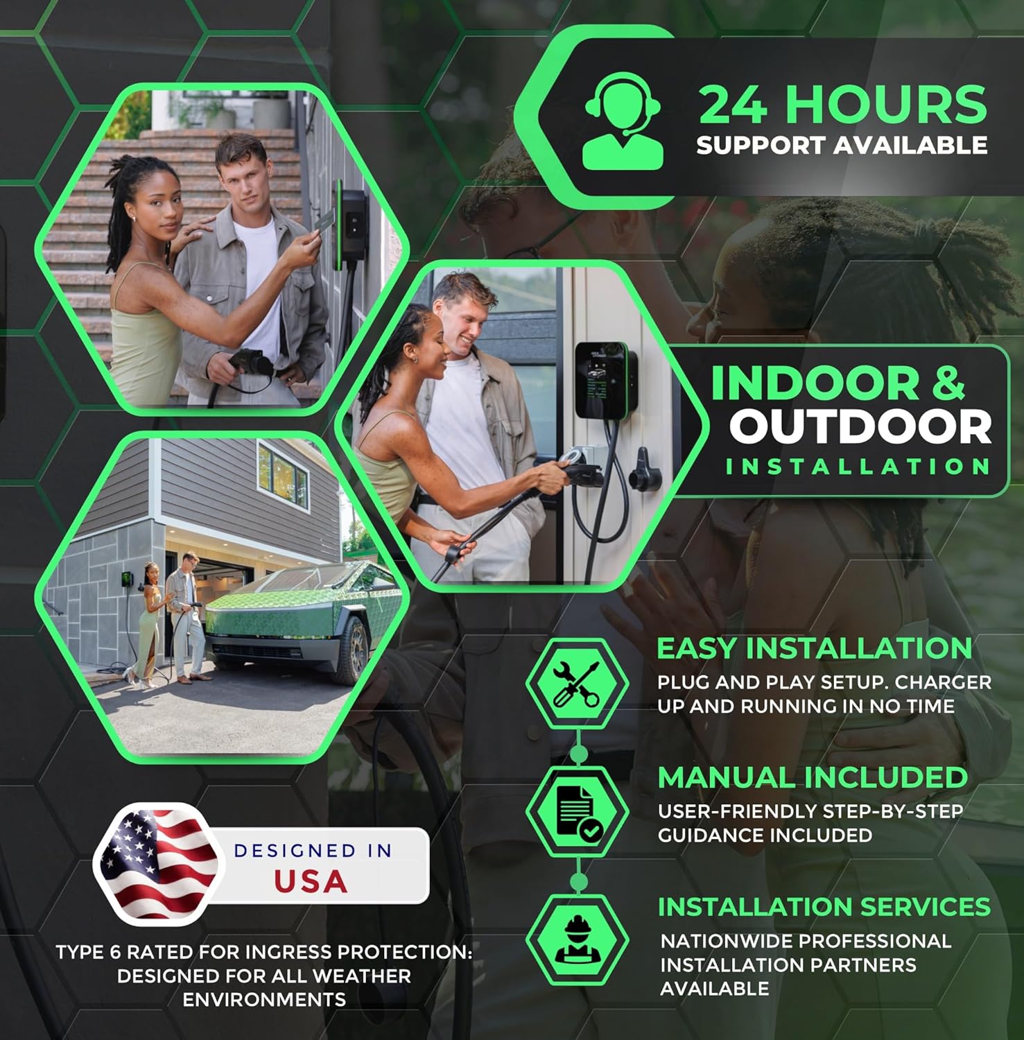 CHARGER:It does what it says it can do with charging up to 48Amps, when hardwired. It looks stylish. Has all the info I need on the display. Has an additional app with all the configurations anyone would need: Scheduling, delayed charging, and specifying the Amps (or kW) used for charging. This last one was the key feature why I bought this unit. In theory, charging at 20 Amps will reduce heat at the battery and prolong my battery life. 95% of the time, 20 Amps will be more than enough for me when charged overnight. If I need the full 48A, it’s as easy as pushing the button on the side of the unit a few times (or using the App). Note: They currently use the Smart Life App, but customer support mentioned they were developing their own. DO NOT confuse it with the Apex EV app, like I did. That’s a whole different company. Also, the only charger I found that comes with 30ft charging cord which was key in my installation to allow me to charge both inside and outside my garage. CUSTOMER SERVICE:This is the main reason I’m writing this review. I had multiple questions with my installation to make sure I was 100% good to go as a DIY installer. Each time, support responded in under 60 minutes with very helpful info. It didn’t matter if my email was during the day, night, or weekend. That’s how I treat customers for my business, and it’s great to be treated that way when I’m someone else’s customer!INSTALLATION:Notes: If you’re comfortable around 240VAC and know a bit about household electrical wiring, I’d say this is a DIY job, which is what I did. Below is my installation journey. I hope it will help. I literally designed the whole setup using ChatGPT, and then double-checked everything on Google. I initially assumed the sub-panel already located in my garage would be sufficient. I mentioned this to ChatGPT and it started asking me the right questions that helped me quickly realize it was NOT sufficient. That panel was fed with a 60-amp breaker and I’m already running a mini-split, electric dryer, and general lighting off of it. It was working for my welder, but I’m guessing I never had the dryer running at the same time I was welding. So, I decided pull power directly from my main electrical panel in my basement. This required moving a couple of loads to “tandem” breakers to make room for the 60 Amp breaker. Note: for 48Amps, you’ll need a 60 Amp breaker (must be 125% above the current). They also make tandem double-pole breakers that may be a better option for many of you. Note: The Amazon listing said NOT to use GFCI breaker, but the paper instructions said to use one. Customer support confirmed GFCI breaker was NOT necessary when hardwiring. From the main service panel, I pulled red and black 4AWG copper THHN and one 10AWG copper THHN through 1-1/4″ liquid-tight flexible conduit with matching fittings. Pro-Tip: Pull the wires through the conduit in a straight run in your yard/driveway before installing the conduit and having to navigate bends. Best to let the flexible conduit relax in the sun for an hour first. Even when doing it this way, I could only push the fishtape 50-60′. My theory… I went with larger conduit than necessary expecting it to make my pull easier, but I now suspect the larger diameter allowed the fishtape to buckle/fold after 50′ of resistance. So, if I did this again, I’d try 1″ conduit, maybe even 3/4″. So, I ended up putting an LB junction box in the middle of my 80′ run. From my basement, I ran conduit to the outside of my home and then back inside the garage. LB junction boxes at every entry/exit point are the ideal way to do this as it breaks up a longer run and allows you to pull the wire in shorter runs, and it gives a cleaner installation look. Note: I’m not saying cut the wire here at these junction box. I’m saying cut the conduit here. I still had a full continuous 80′ run of wire. The junction box is just a convenient “pull-point” because it’s MUCH easier to pull 4AWG wire 30′ than 50′! I could have gotten away with 6AWG copper wire, but I opted for 4AWG to reduce electrical losses (heat) due to voltage drop. The ground wire only needs 10AWG because it’s more of a signal wire to detect faults than designed to carry current. Note: The charger’s ground wire looked to be 6AWG, but unnecessarily oversized according my research. Neutral wire is not needed when hardwiring. It will be in the NEMA plug outlet on your wall if you’re plugging the charger into an outlet, but the Mach 2 charger doesn’t even have a neutral wire. At the end of my run (next to the charger), I cut the plug end off the charger and ran it into a junction box. where it connects to my 80′ conduit run. I wanted to run directly into the charger itself, but the instructions said not to.IMPORTANT: -Connections NEED TO BE TORQUED to spec!!! This is a critical safety step that many DIYers skip. The in-lb torque wrench is cheap. USE IT!-I read on many EV Charging forums that the Polaris style 14AWG to 4AWG connectors will melt because they are not rated for CONTINUOUS amperage. I opted for a “14 AWG to 2/0 AWG Dual-Rated 2-Port 1-Sided Entry Insulated Multiple Tap Connector, Black” from Home Depot (Model # G60005A Store SKU # 409255). These required 100in-lbs of torque, which is a fair bit of strength. I’m a big guy and barely got this done myself. Some of you will need to hold the connector with a large pair of pilers while someone else twists the torque wrench.-I opted to use a large blue wire nut rated for 16AWG to 6AWG for the ground.-60 Amp breaker was ordered from Home Depot. -Wire: Ordered custom lengths at affordable prices from Wire & Cable Your Way (online). The company shipped right away. I recommend!LESSONS LEARNED:-Square D electrical panels have two styles of breakers, QO and Homeline. Get the right breaker for your panel. -I didn’t know what 2/0AWG was. It’s pronounced “ought” (or “aught”), which I ha